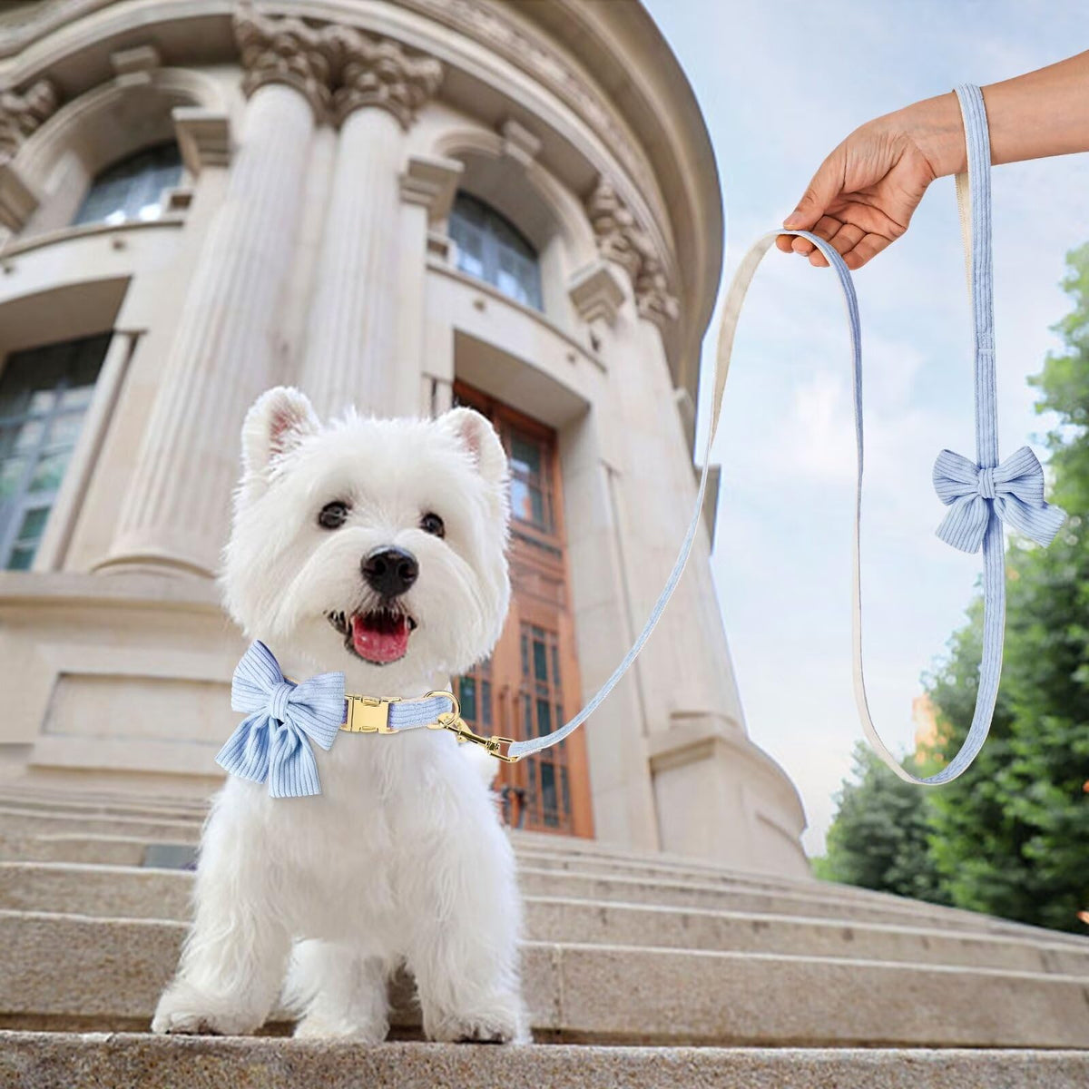 Didog Dog Collar And Leash Set With Bowtie, Girl Dog Collars Metal Buckle Adjustable For Small Medium Dogs(Blue, S)
