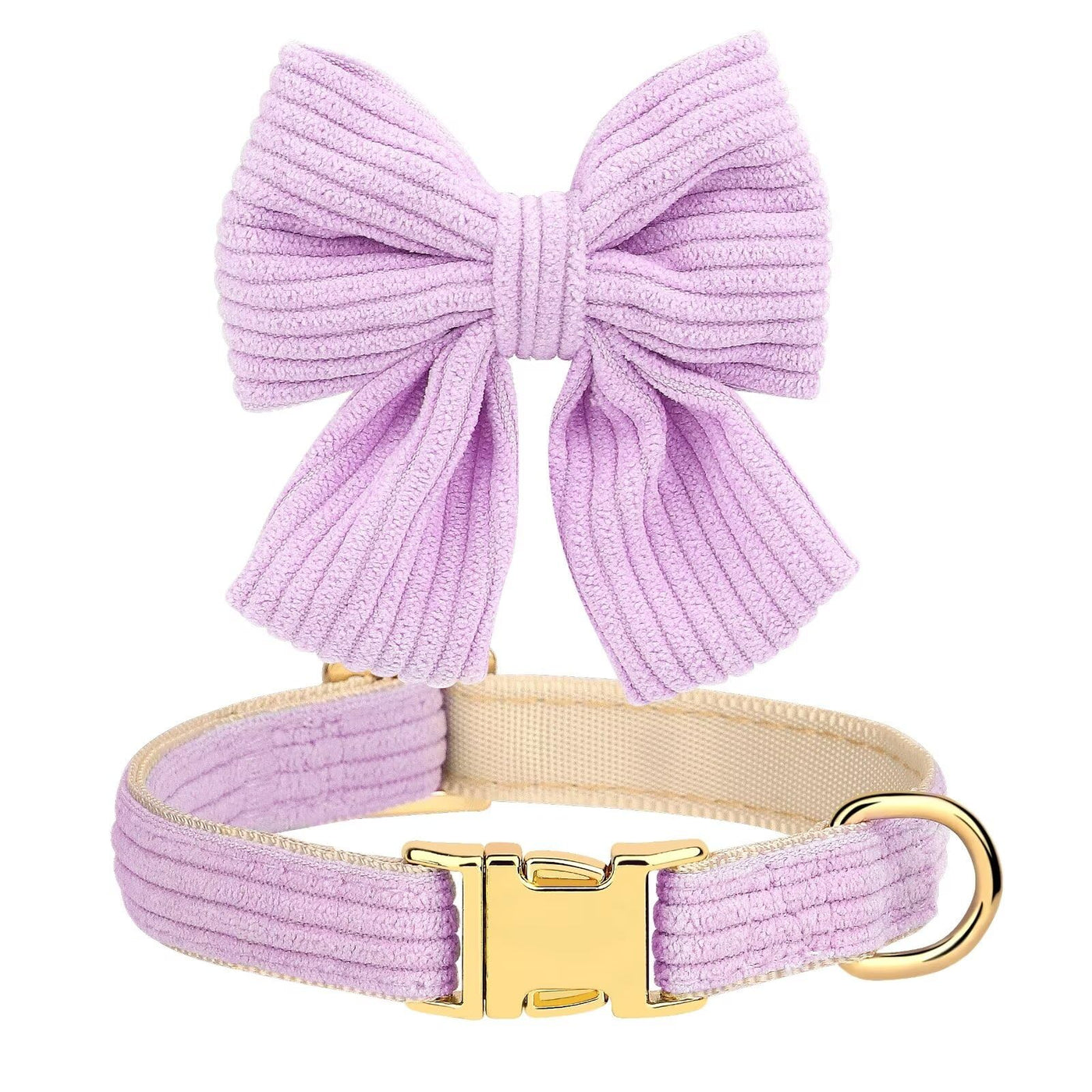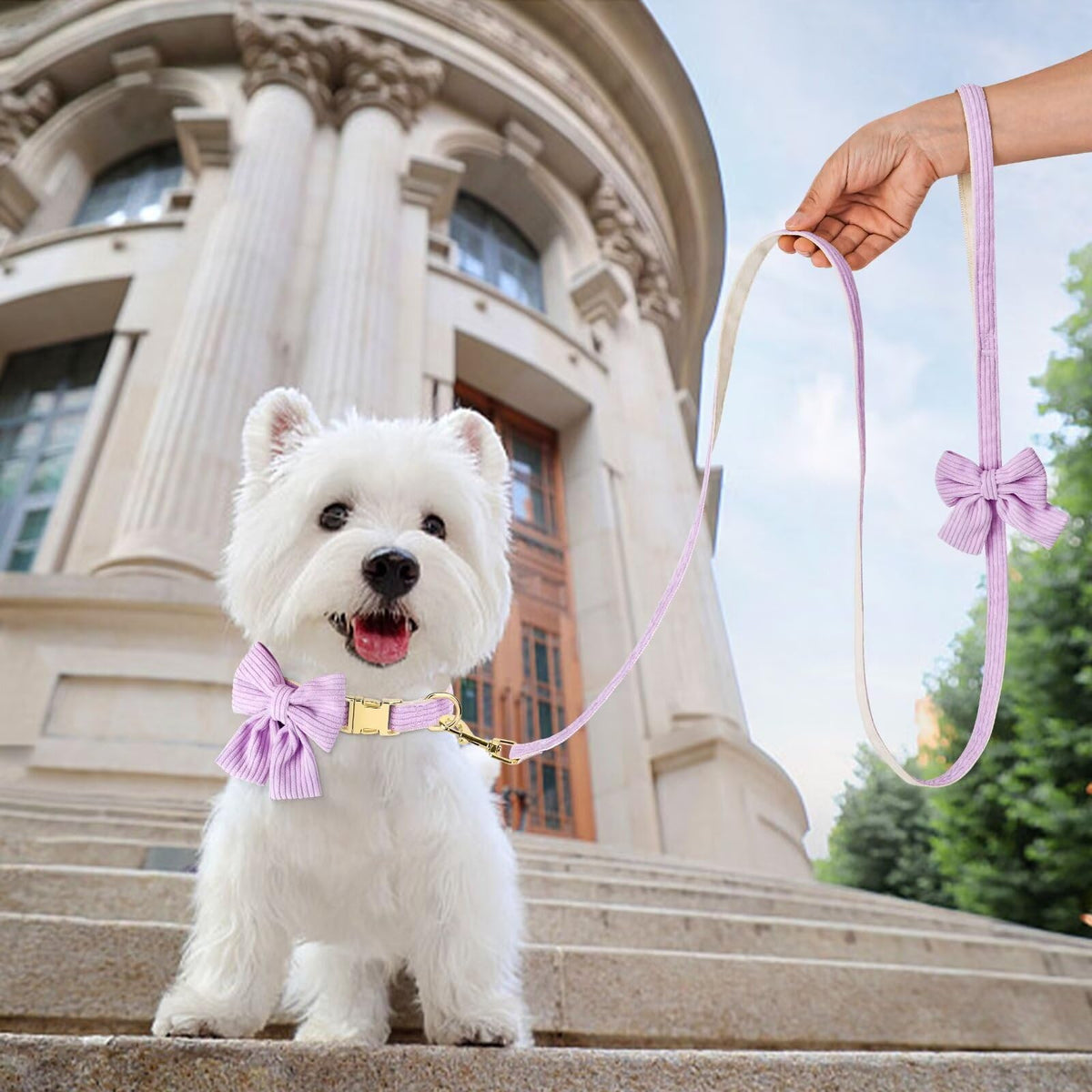 Didog Dog Collar And Leash Set With Bowtie, Girl Dog Collars Metal Buckle Adjustable For Small Medium Dogs(Purple, M)