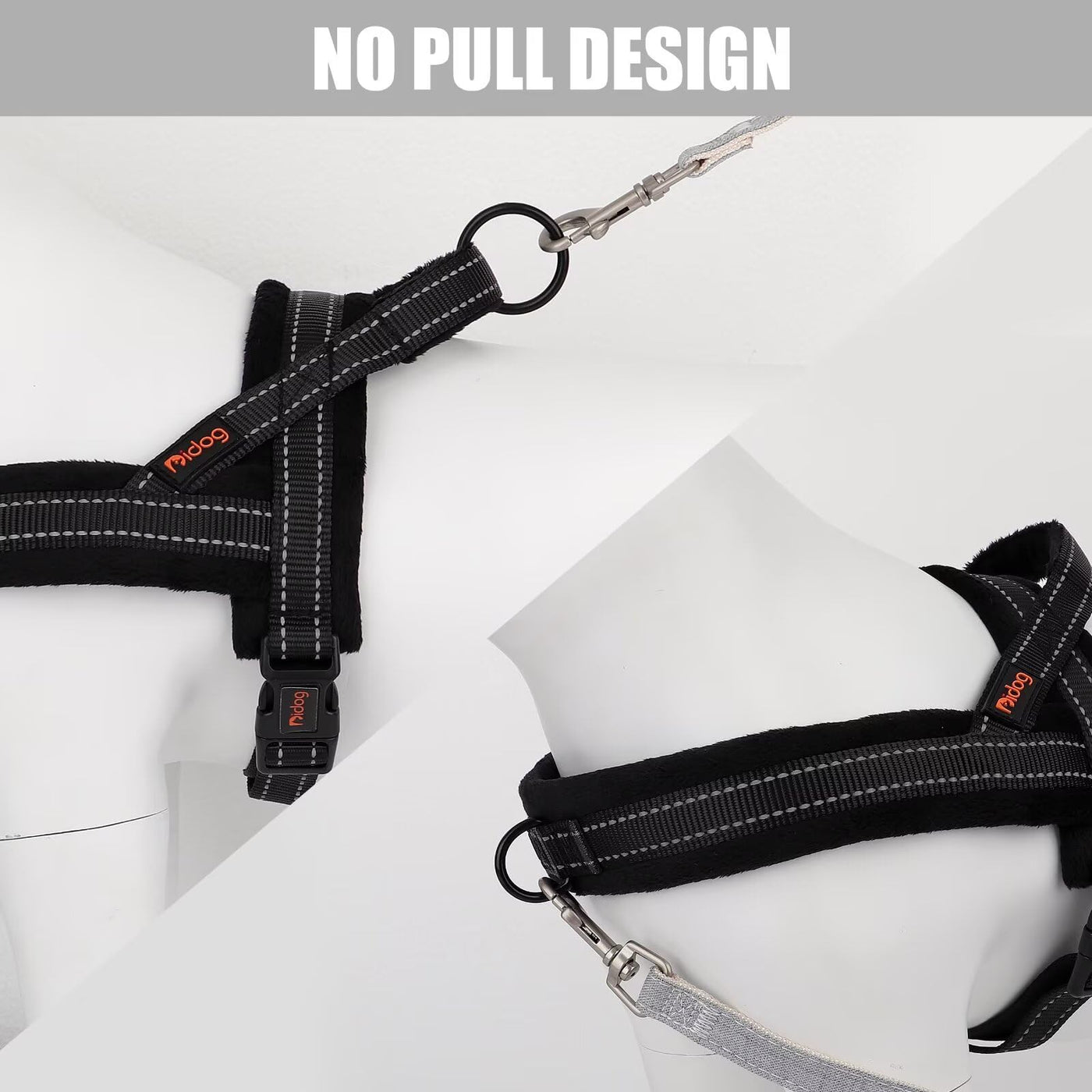 Didog Soft Flannel Padded Dog Vest Harness, Escape Proof/Quick Fit Reflective Dog Strap Harness,Easy For Training Walking,Black M Size