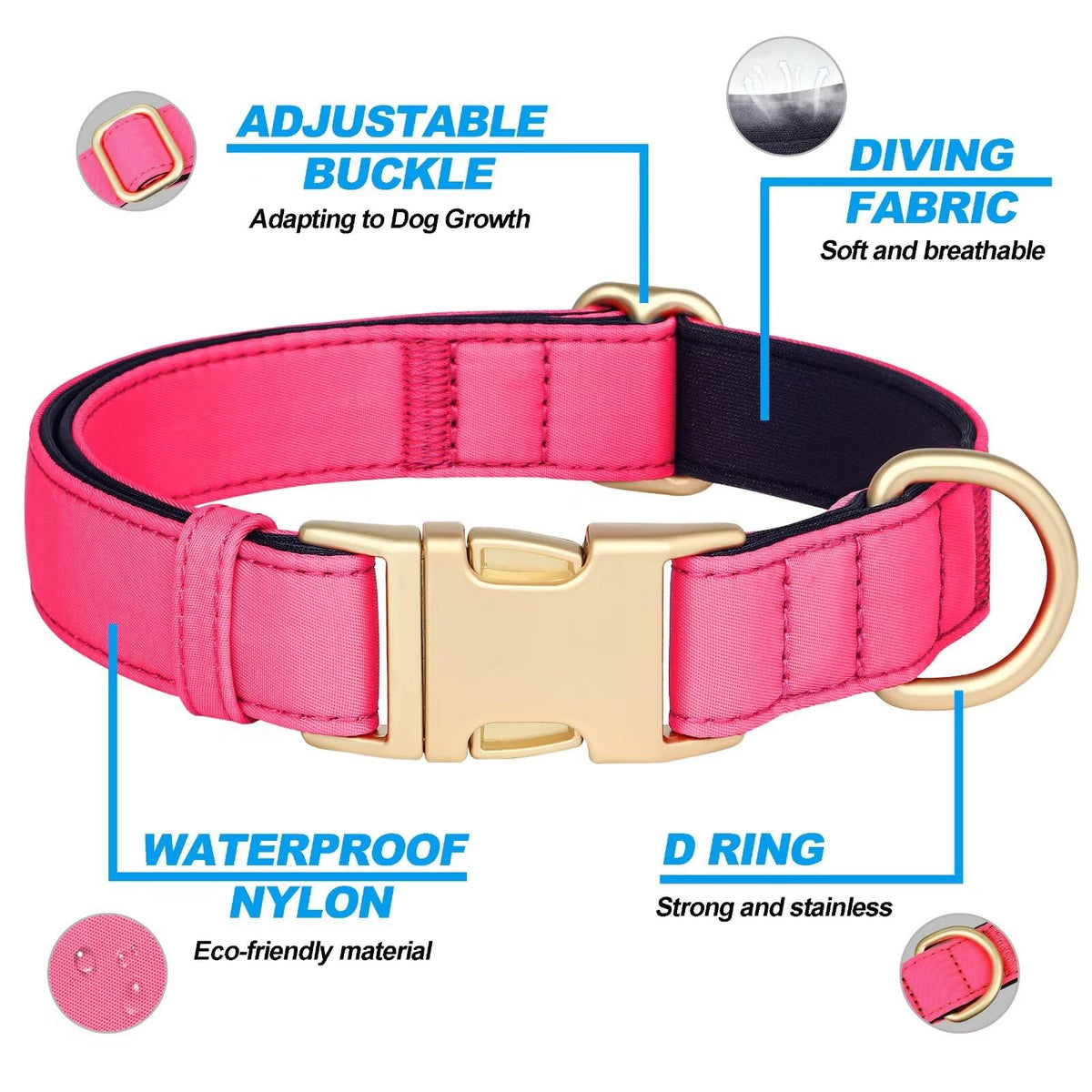 Didog Soft Padded Dog Collars For Medium Dogs, Cute Pink Pet Collar With Quick Release Buckle, Light And Breathable For Girl Dog