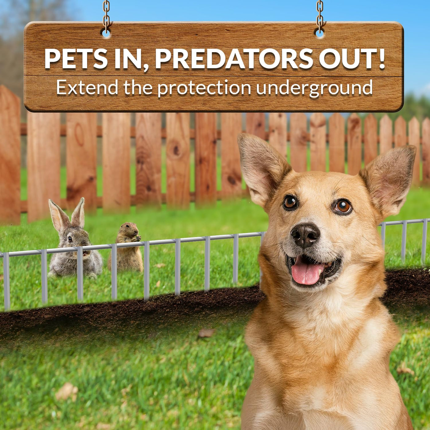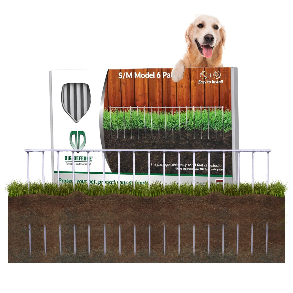 The Dig Defence Animal Barrier Fence Has Patented The Technology That Protects Your Pets Safety. Our Dog Fence Barrier Makes Sure That Your Pets Are Securely And Humanely Contained While Also Keeping Critters And Pests Out Of Your Yard. This Fence Extender For Dogs Keep Dogs From Going Under Fence. This Dog Digging Fence Barrier Requires No Digging And Works With Existing Fencing, Cutting Down The Time And Effort Required For Installation. Our Pet Fences For Dogs Outside Are Manufactured In The Usa, And Made From The Highest Quality Galvanized American Steel. It Extends The Protection Of Your Fence Underground. It Contains Tines With A 2-Inch Separation For Smaller Pets. Each Anti Dig Fence Barrier Is 32 Inches In Length And 8 Inches In Depth With A 2-Inch Spike Spacing. One Outdoor Fence For Dogs, When Used In Conjunction With Others, Will Protect 3 Feet Of Fence. Our 4-Count Package Covers Up To 12 Total Feet, The 10-Count Package Covers Up To 30 Total Feet, The 25-Count Package Covers Up To 75 Total Feet, The 12-Count Package Covers Up To 36 Total Feet, The 24-Count Package Covers Up To 72 Total Feet, And The 6-Count Package Covers Up To 18 Total Feet. Dig Defence Offers Durable, Maintenance-Free Animal Barrier Fence Products For Your Pets Safety. Proudly Made In America, Our Commitment To Doing The Right Thing Ensures Pets Are Protected, And Your Property Remains Critter-Free. With Dig Defence Animal Barrier Fence, You Can Have Peace Of Mind Knowing Your Pets Are Secure And Your Property Is Safe From Potential Pests And Predators.