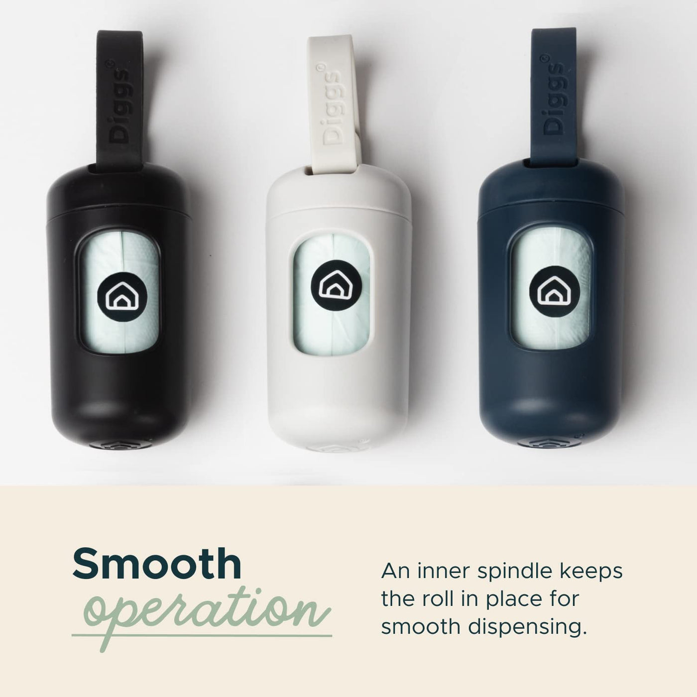 Diggs Dog Poop Bag Dispenser For Leash - Premium Dog Waste Bag Holder With Easy One-Hand Dispensing (Navy)