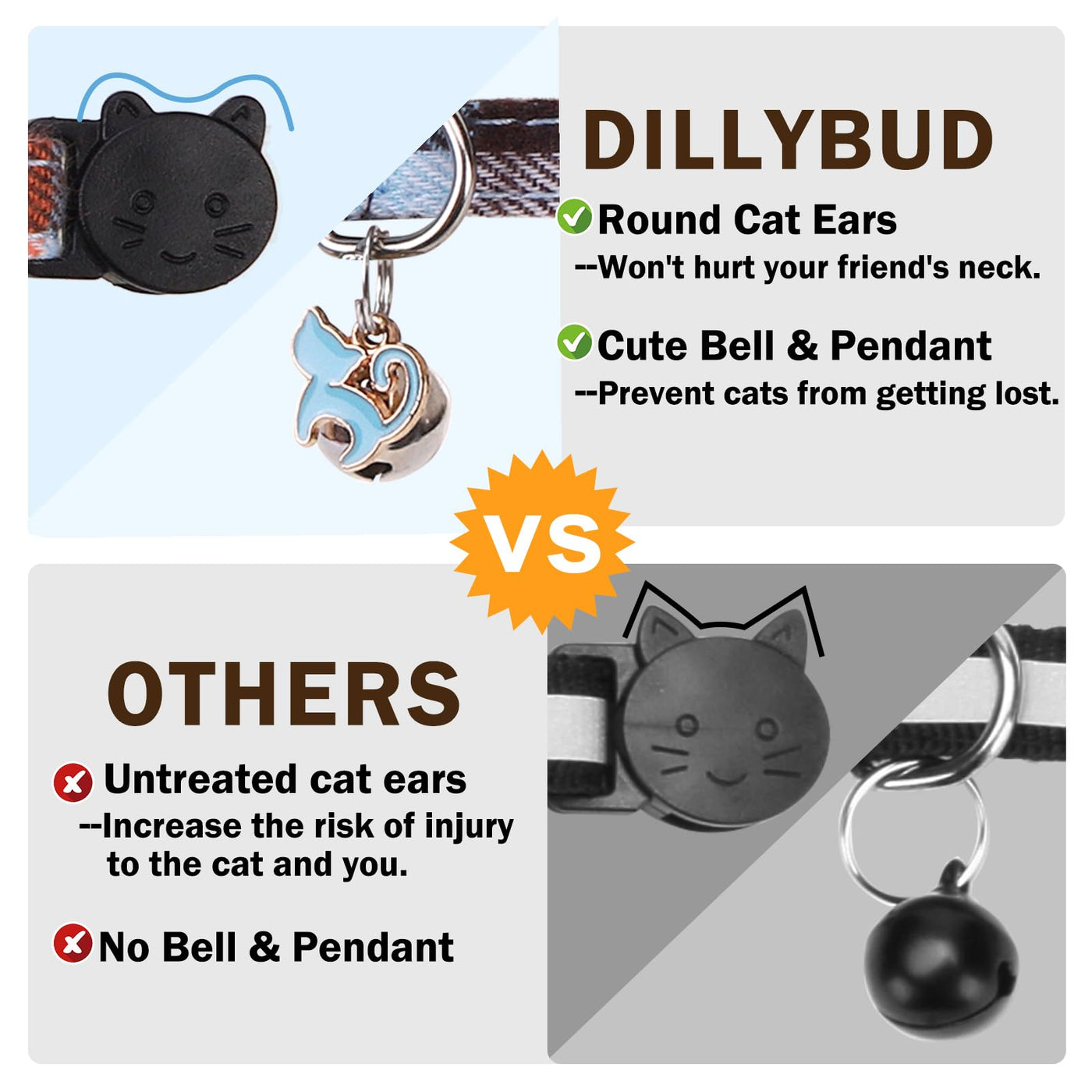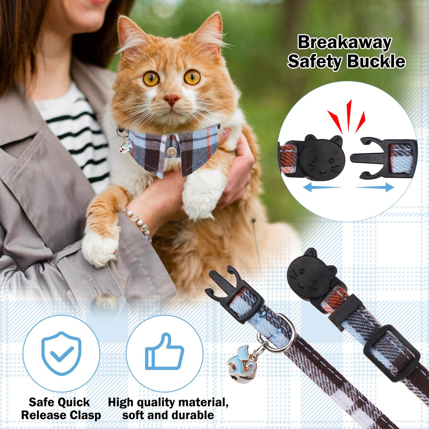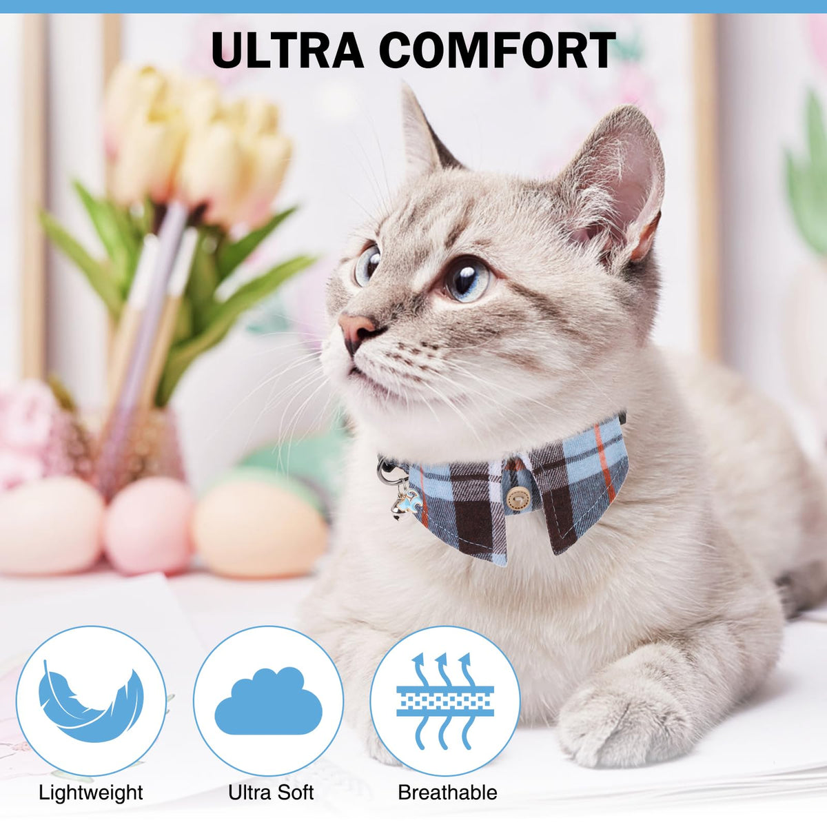 Dillybud Cat Collar With Bells Breakaway, Shirt Cat Collar For Girl Boy Cats With Removable Bow Tie Collar, 2 Pack Cute Plaid Ki