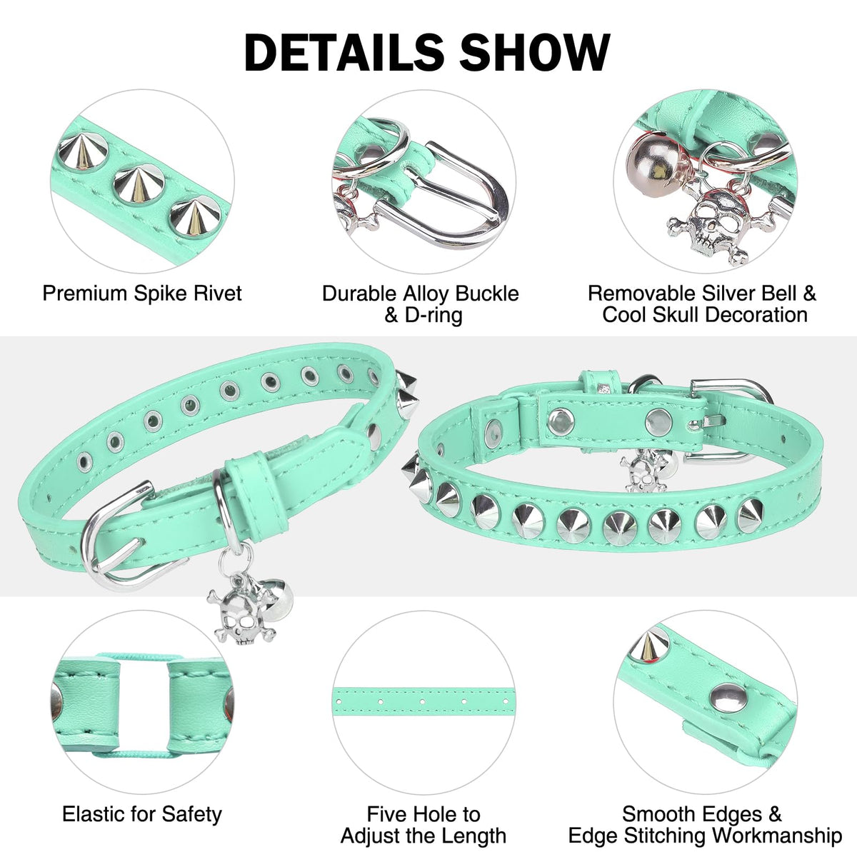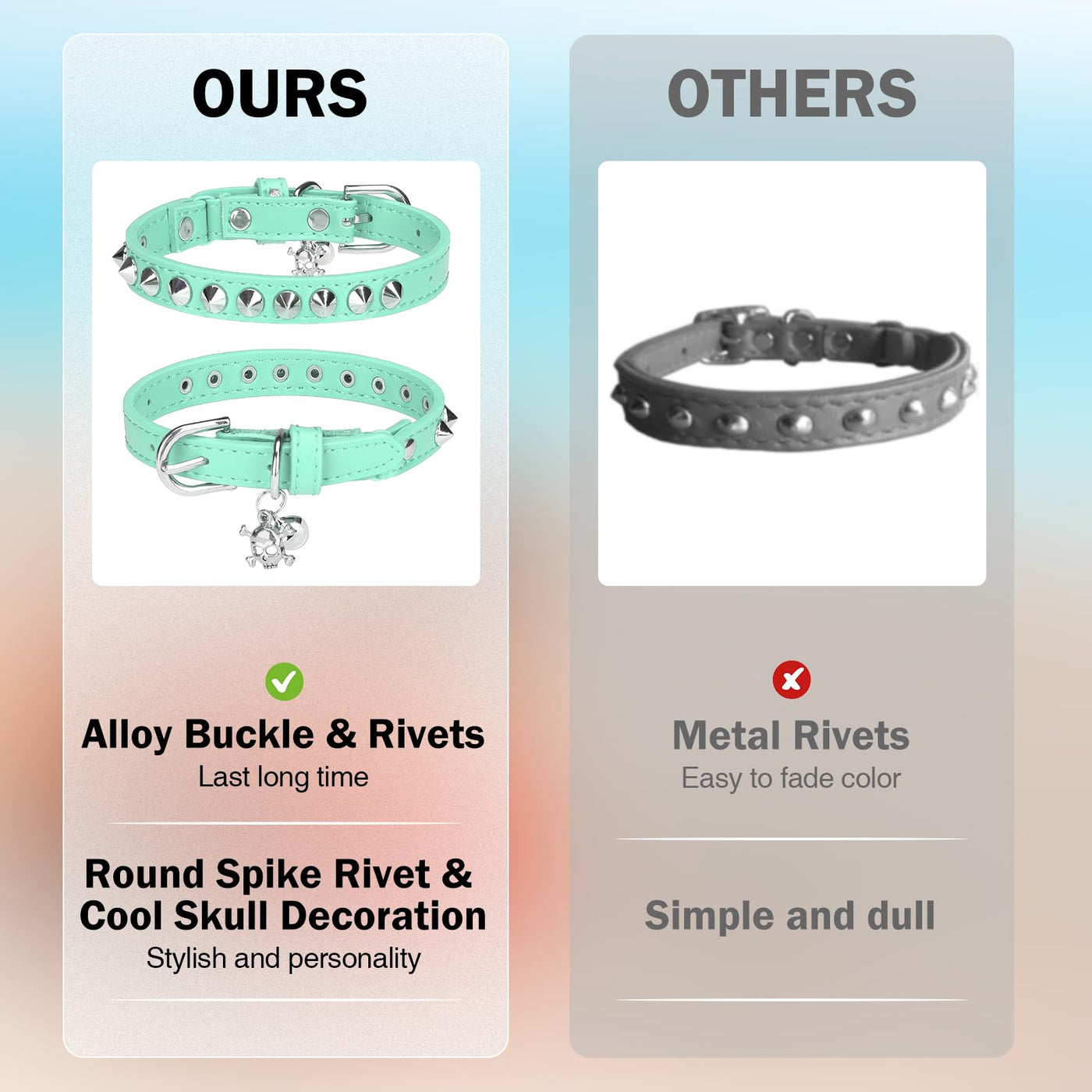 Dillybud Leather Cat Collars For Boy Girl Cats With Bell And Safety Elastic Belt, Personalized Rivets Stud Adjustable Safe Buckl