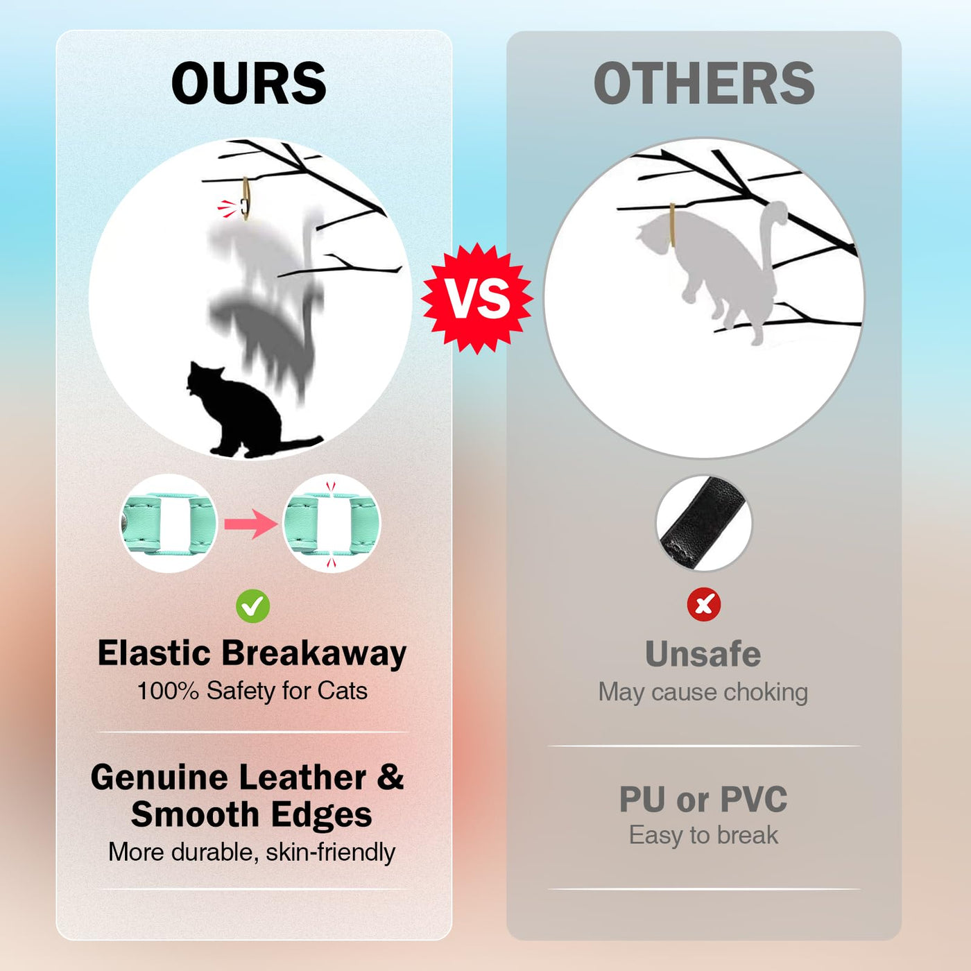 Dillybud Elegant Genuine Leather Cat Collar Is Finely Crafted, With Soft And Safe Leather Material. Its Minimalist Design And Color Scheme Allow You To Freely Match It With Other Pet Accessories Or Your Own Attire, Making It A Great Choice. Considering Unexpected Situations That May Occur During Cat Activities, We Have Incorporated Safety Designs Into The Cat Collars, Allowing Cats To Break Free When The Collar Gets Stuck. We Care About Them, Just Like You Do.