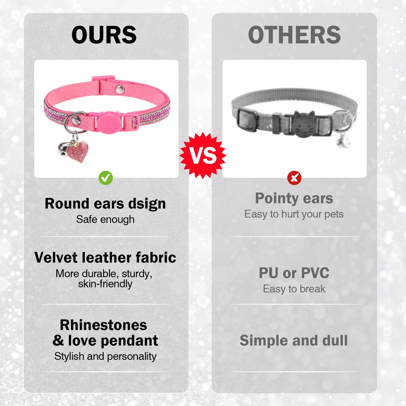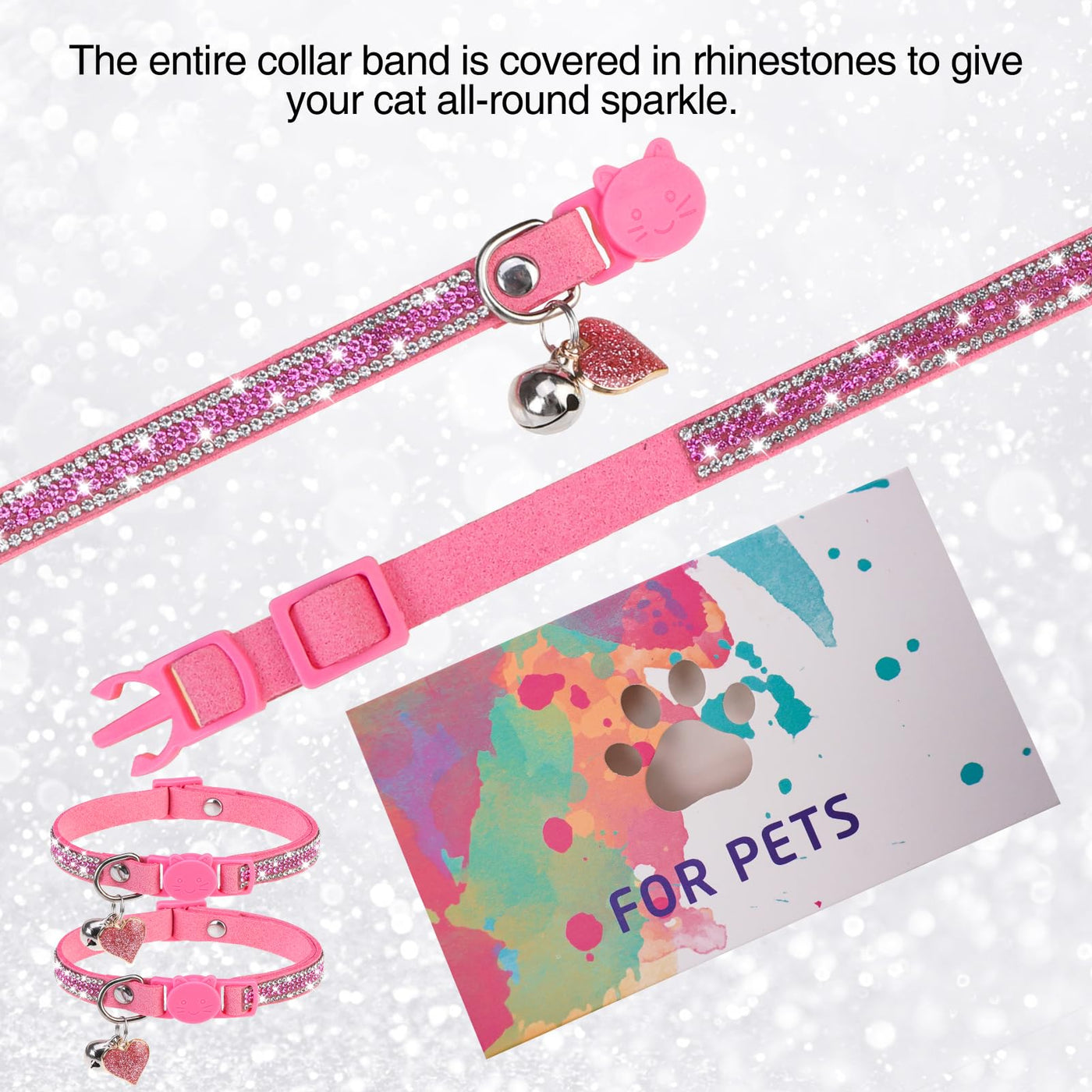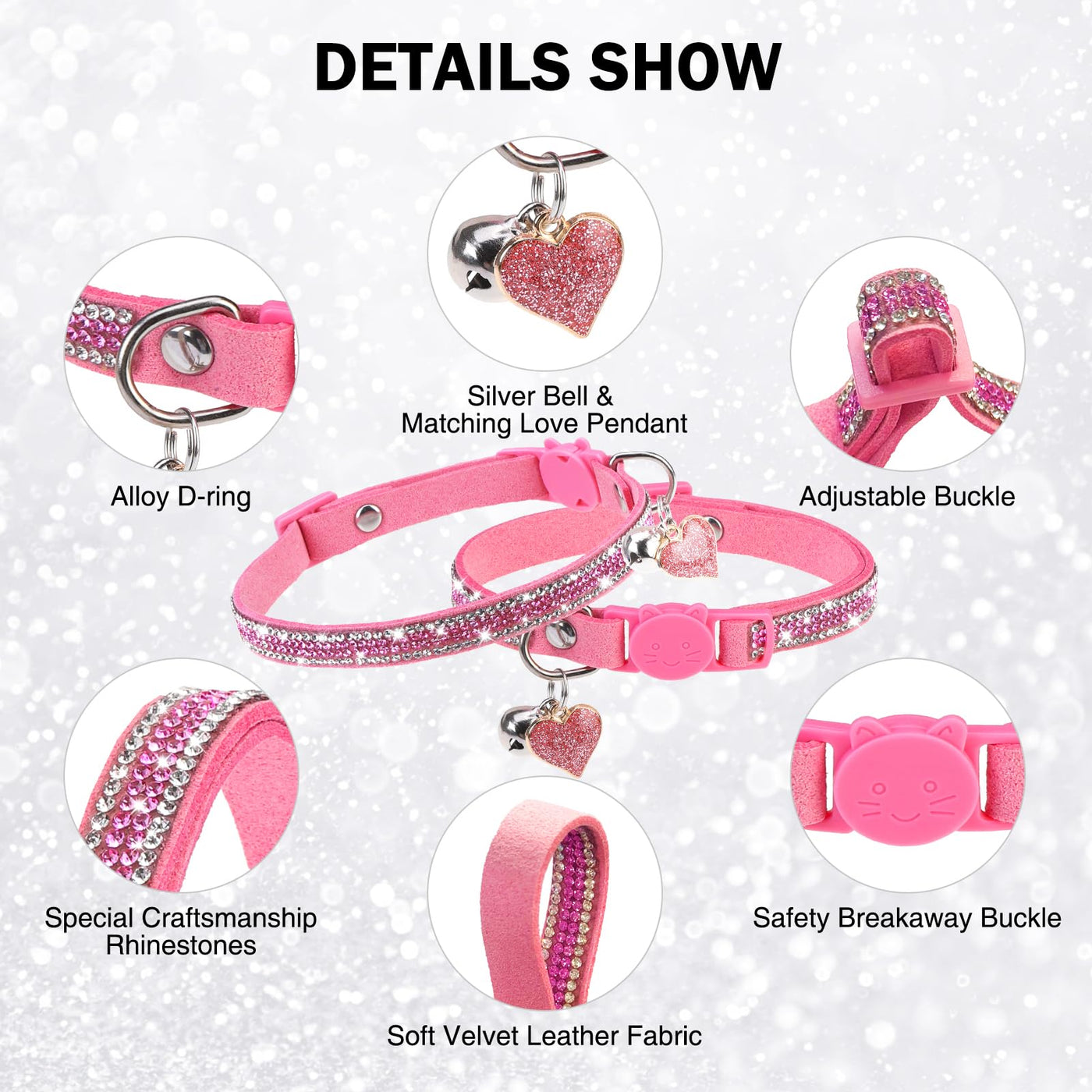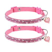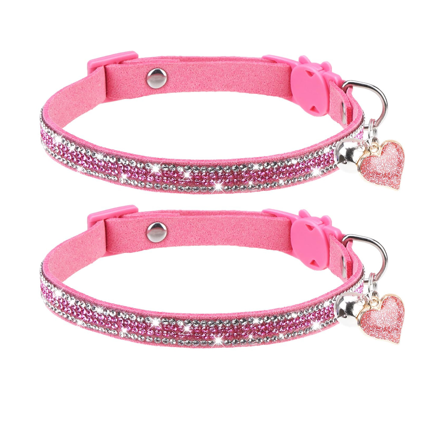 Dillybud Rhinestone Cat Collar Breakaway With Bell Safety Buckle, 2 Pack Bling Diamond Kitten Collar For Gril Cats, Soft Velvet
