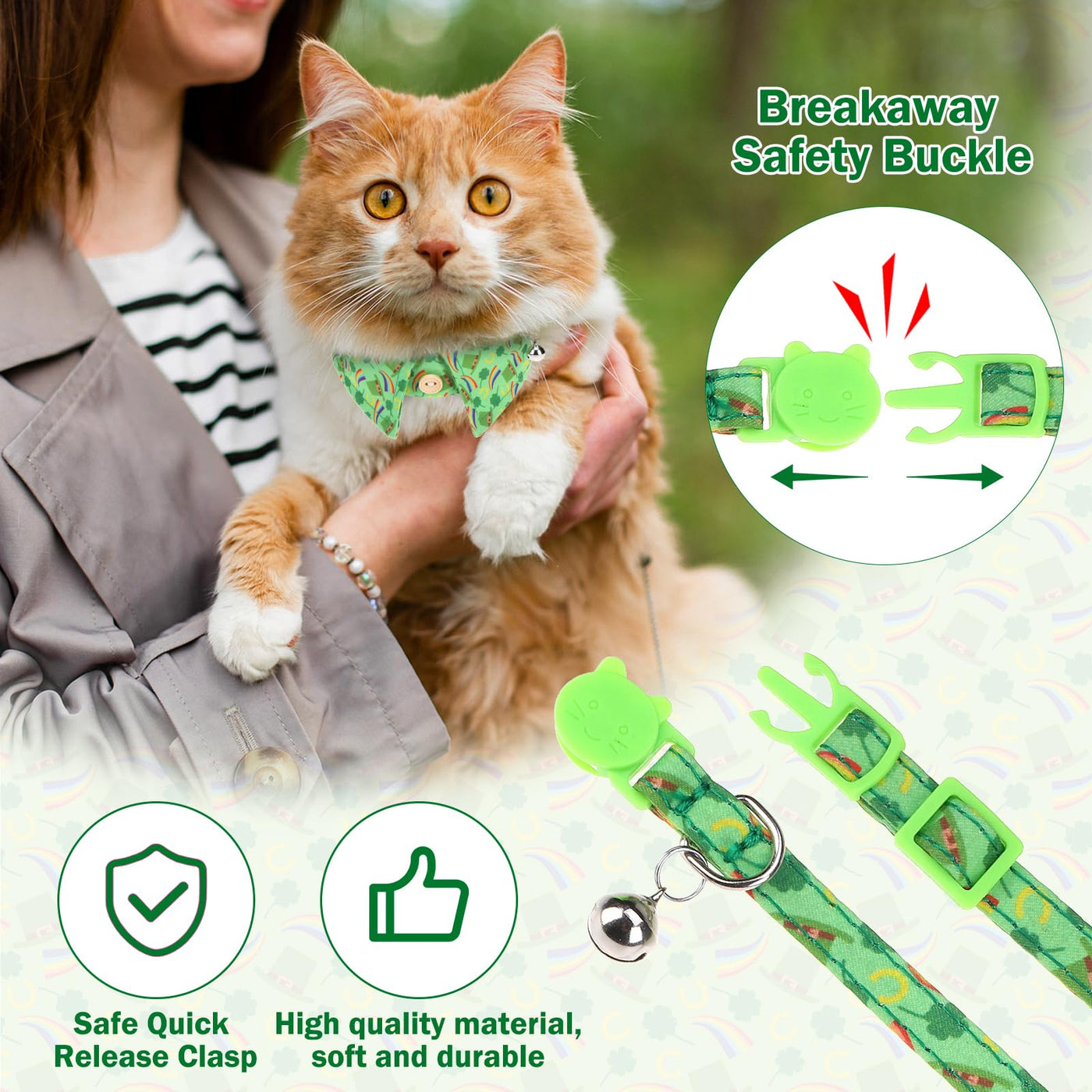 Dillybud St. Patrick'S Cat Collar Breakaway, Irish Clover Cat Collar With Bow, Green Shamrock Spring Cat Collars With Bells