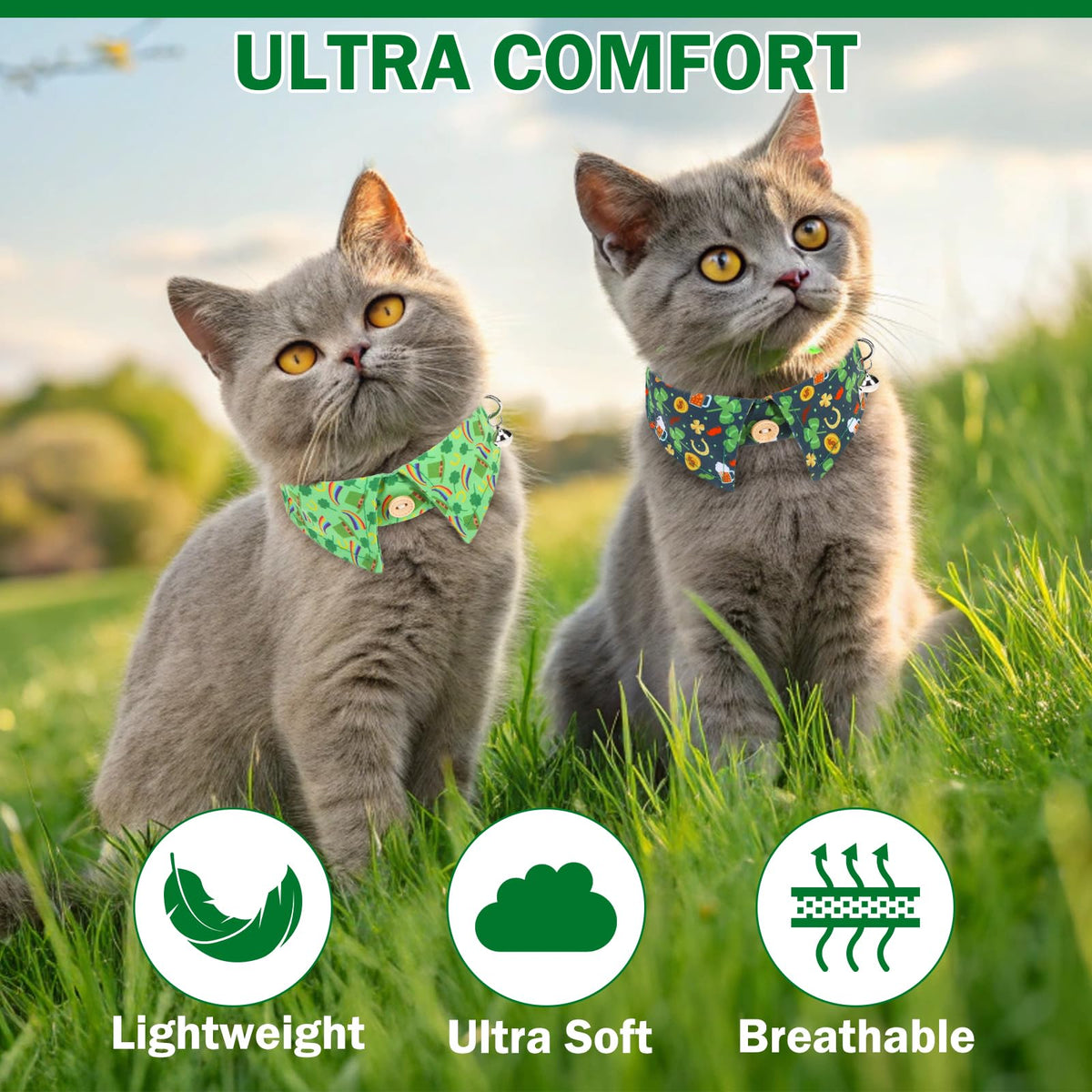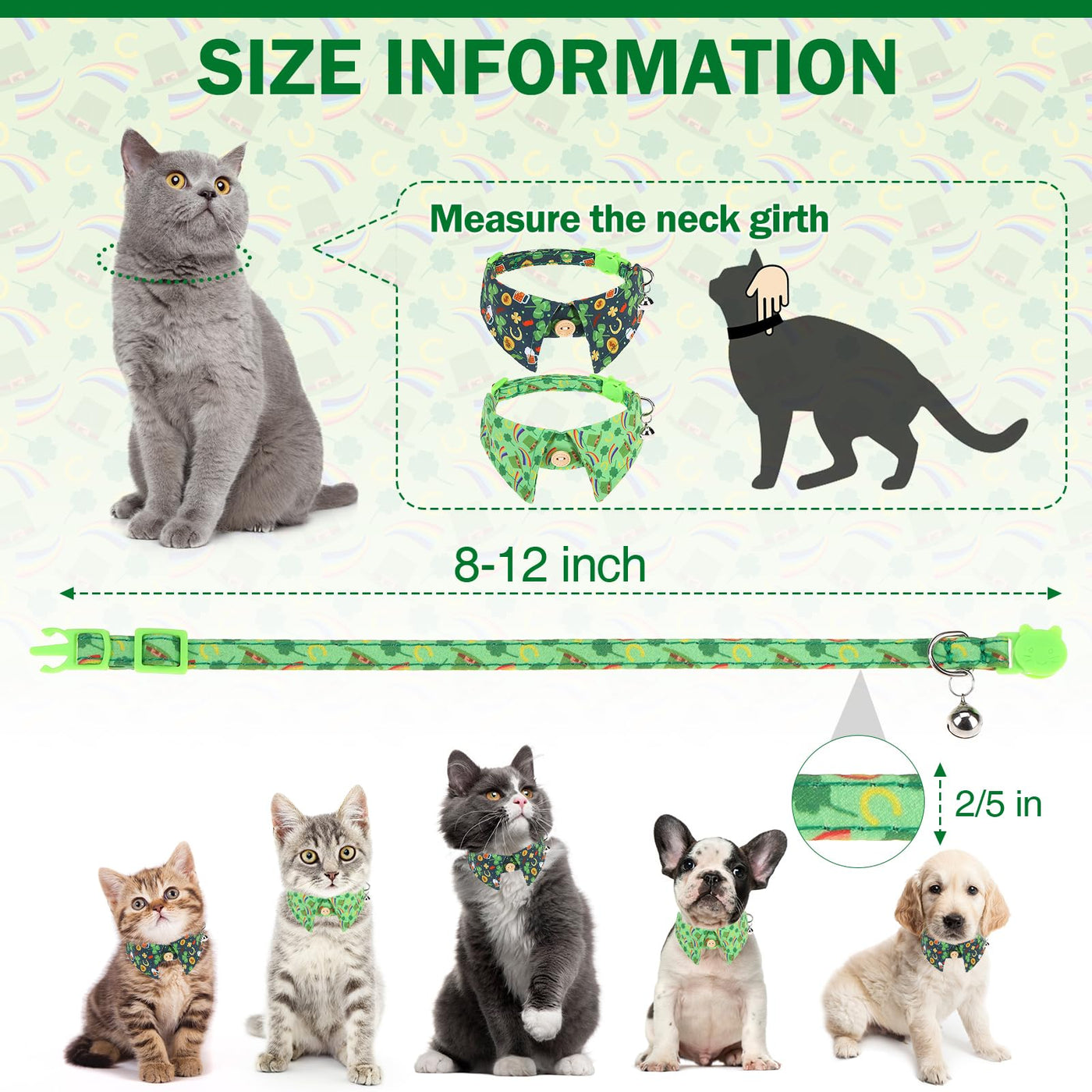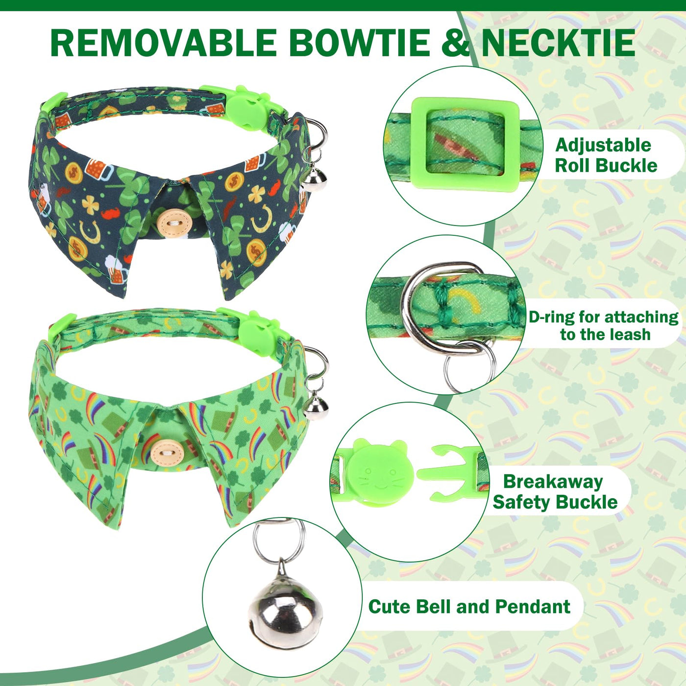 Dillybud St. Patrick'S Day Cat Collar With Bells & Cute Pendant- Cat Collar Breakaway With Removable Bow Tie For Girl Boy Cats, 2 Pack Holiday Kitten Collar Safety Adjustable