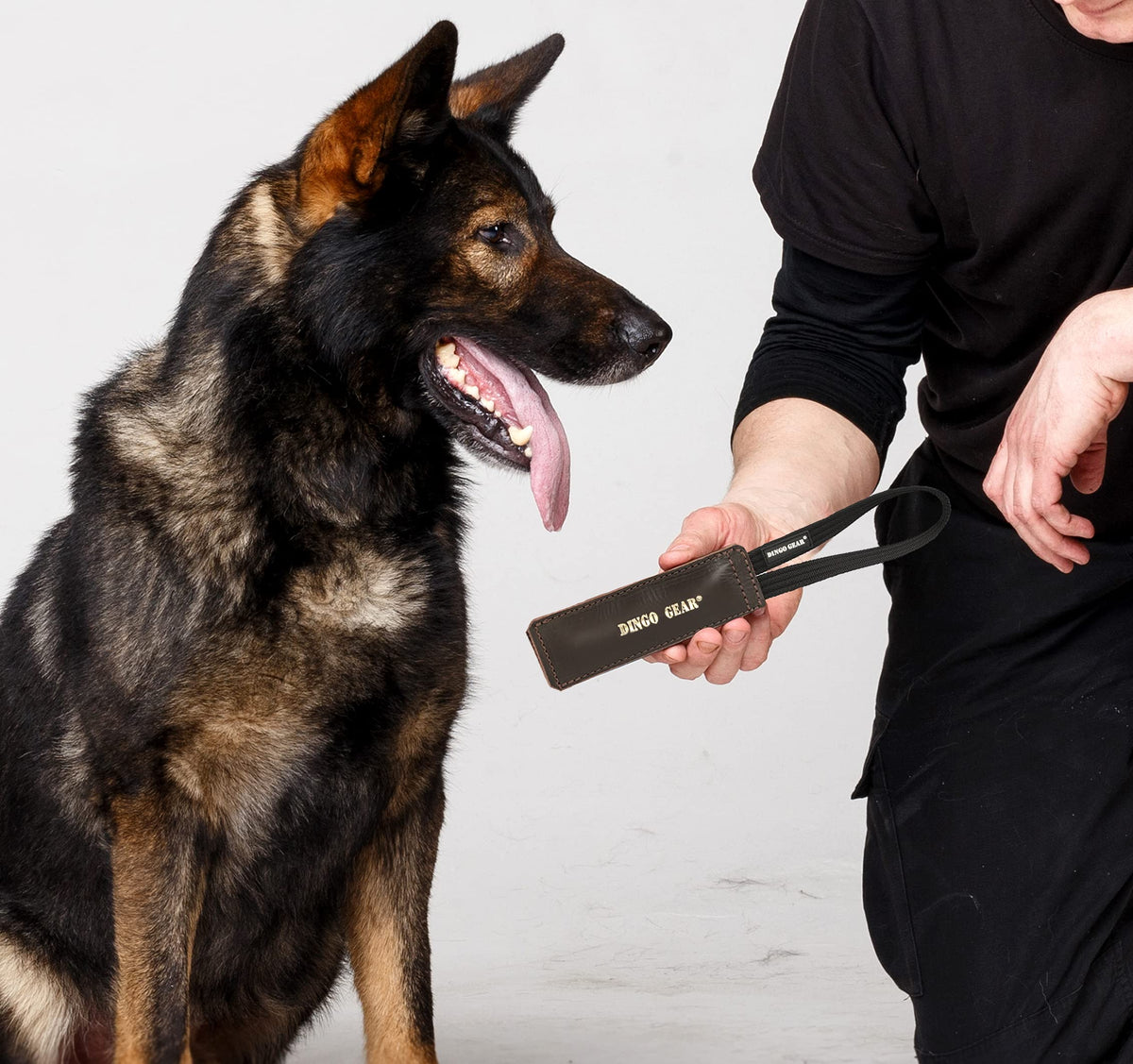 Dingo Gear Dog Bite Tug Handmade of Brown Grain Leather Strong, Chocolate, 0.1 kg
