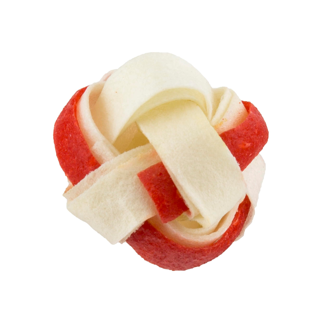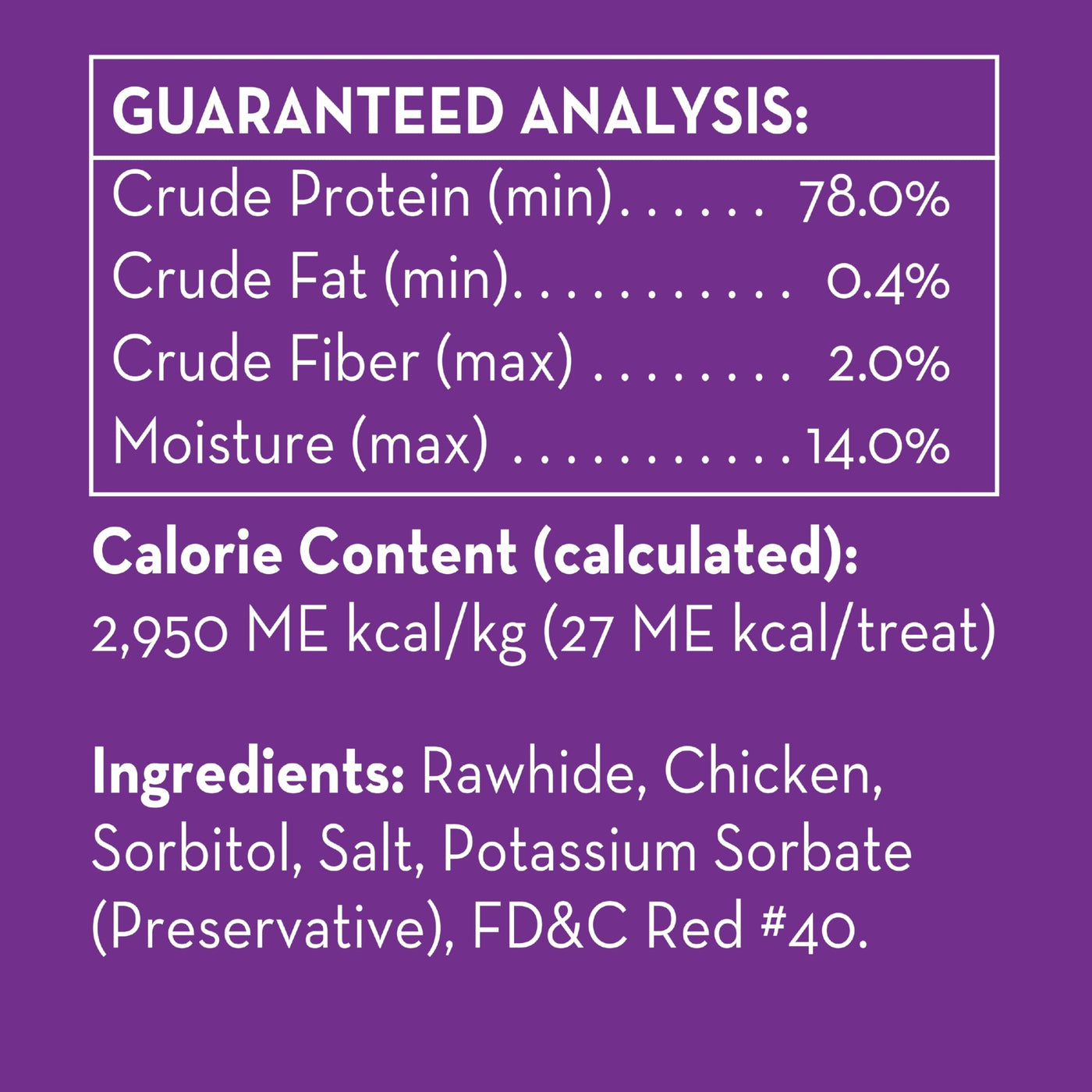The Dingo brand combines powerful flavors and benefits to create bones, chews and treats that are sure to keep you and your dog wanting more. With a wide variety of shapes and flavors, there are options for any size companion. Dingo Goof Balls are a unique blend of premium rawhide an real chicken, wrapped together in a playful shape to give your dog the ultimate rawhide treat. The fun shape and irresistible flavor of real chicken delivers the big taste your dog will love! Dingo Goof Ball chews also promote clean teeth from the natural action of chewing, making them a snack you both can be excited about! Keep your Goof Ball chews fresh with the resealable pouch.Each pack contains 15 Goof Ball Chews. Feed one a day and always provide plenty of fresh drinking water. Select a chew slightly larger than your pets mouth. Discard any chunks or fragments.