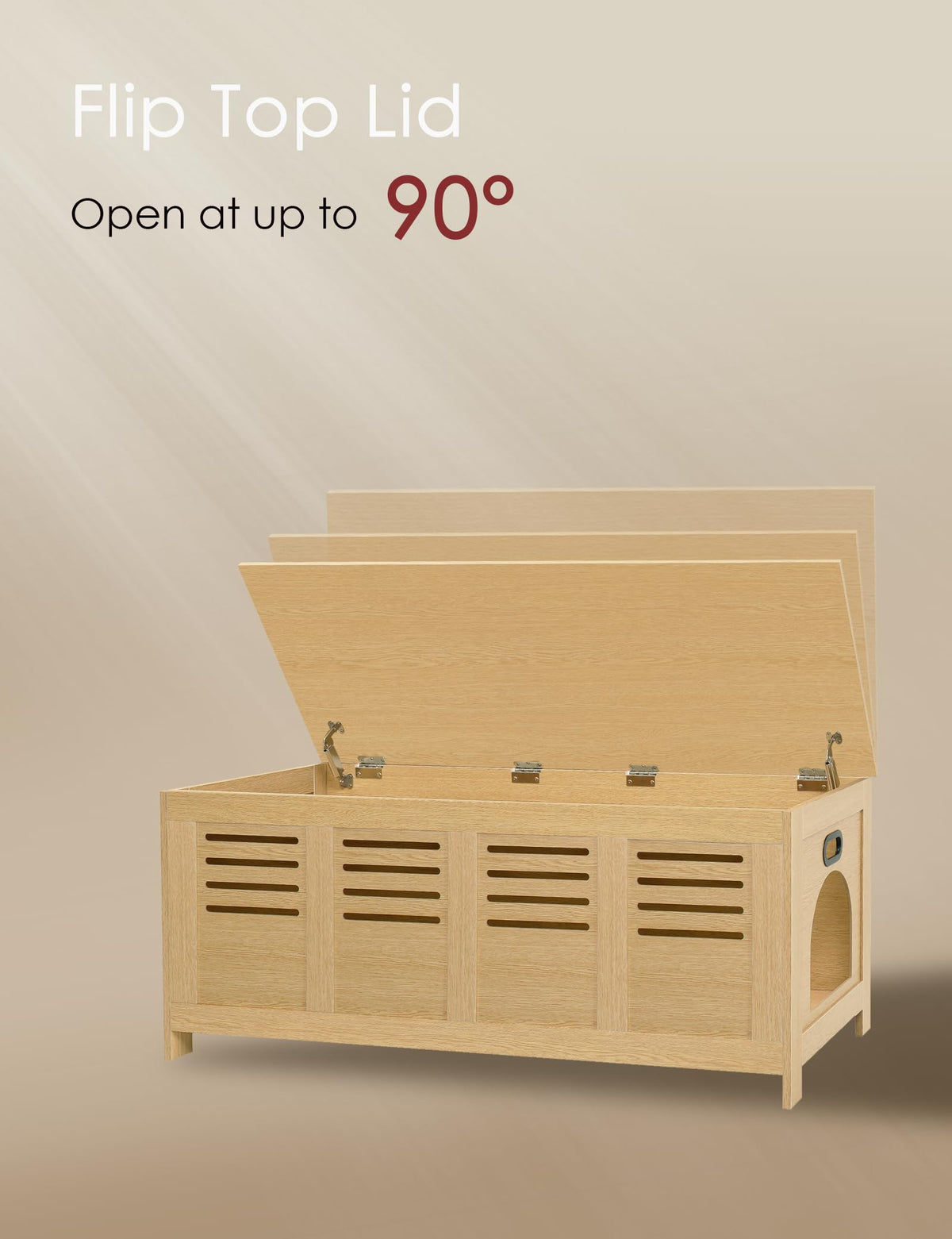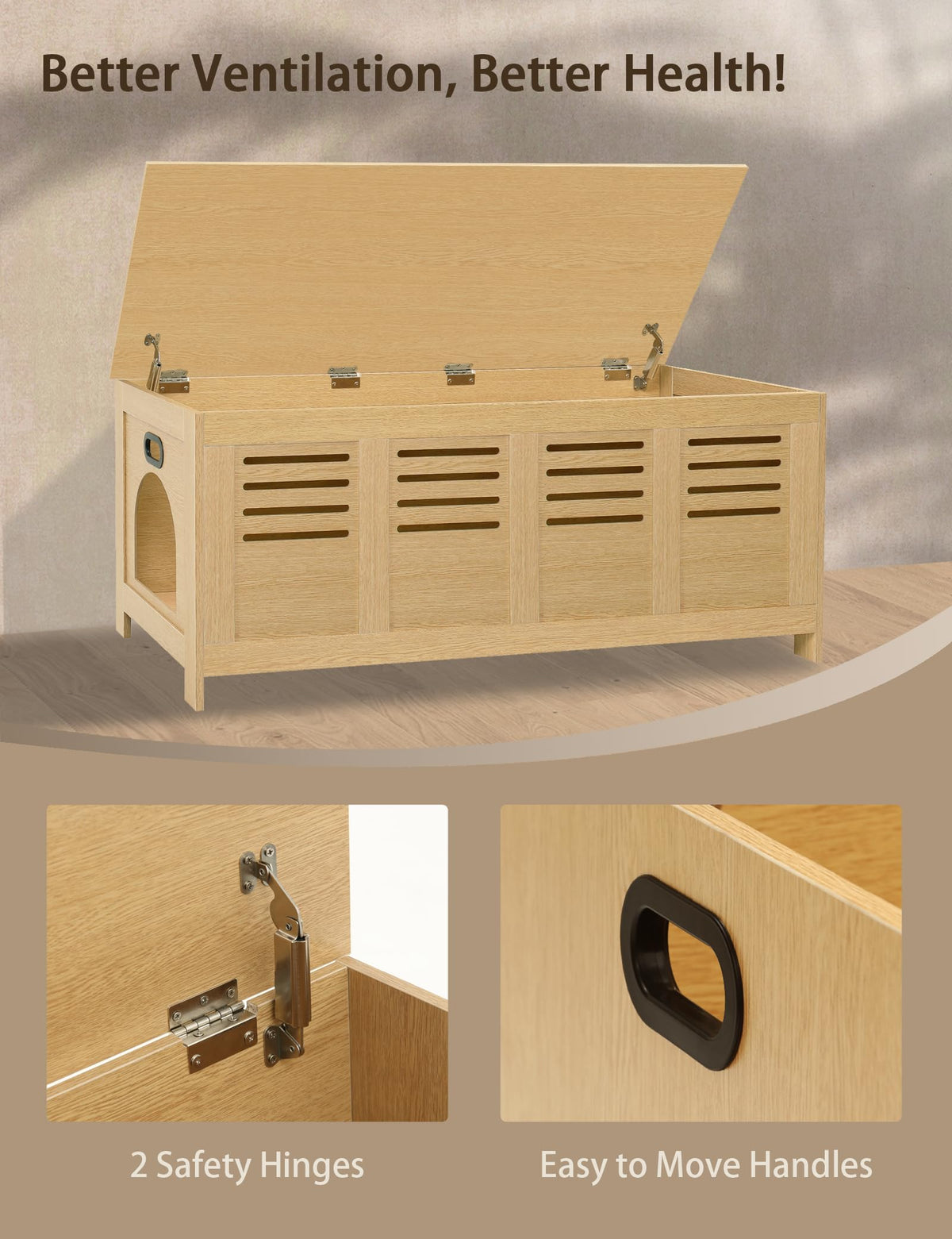 'Dinzi Lvj 47.2'''' Hidden Cat Litter Box Furniture For 2 Cats, Indoor Cat House With Double Rooms And Flip Top, Nightstands, Side Table, End Table For Living Room, Bedroom, Entryway. Stylish Decorative Pet Home & Enclosed Litter Box Furniture Why Do Your Need It? Cats Are Sensitive And Hyper-Vigilant, Which Makes Them Accustomed To Burying Their Poo. The Act Of Toileting Is When They Are At Their Most Vulnerable And So Look For A Safe And Private Location. Cats Do Need Space Alone. They Feel Safer In A Private, Secure Place And All Cats Should Be Provided With A Sleeping Area In Their Home. This Is The Meaning Of The Pet Furniture, Providing A Stress Free And Private Environment For Your Kitty. Give Your Cat Places She Can Call Her Own, A Cat House With Cozy Beds And Soft Blankets. One Piece Of Furniture, More Uses Serve As Litter Box Cabinet, Decorative Cat House, Nightstand, Side Table, End Table, Bed-End Stool And More. Only Need Some Magazines, Books, Plants, Coffee And Lamp, You Can Easily Create An Eye-Catching And Cozy Area. Double Rooms For Multi-Cats Household Double Rooms Hidden Litter Box Furniture Features Large Openings On Both Sides, Allowing Your Pet To Enter And Exit Freely. Spacious Interior Space Can Easily Accommodate 2 Cats And Fits Most Of Common Litter Box. The Best Choice For Multi-Cat Family Dinzi Lvj Notes: Please Do Not Allow Children Play In This Kitty Litter Box Furniture. Always Be Eye-Catching The Elegant Shape And Fashionable Color Rejuvenate The Place That Once Troubled You. Add An Artistic Atmosphere To Your Home And Enriching Your Furniture Decoration. Blend In With Your Home Decor In Living Room, Bedroom, Entrance, Etc. Good Ventilation & Low-Light Environment As One Of Our Family Members, A Safe And Healthy Environment Is Essential For Cats To Play And Rest. Thus, It Is Necessary To Keep The Wood Cat Home Well Ventilated. Semi-Enclosed Structure Creates Low Light Environment For Sensitive Cats To Feel Safe And Secure. With This In Mind, Dinzi Lvj Has Carefully Designed The Louvered Door, So That Your Cat Can Enjoy The Fresh Air And Soft Light While Resting And Playing. Flip-Top Lid With 2 Safety Hinges: We Considered More About The Safety Of You And Your Cat. This Pet Litter Box Furniture Is Equipped With 2 Hinges For Extra Safety. The Lift Top Can Be Stopped At Any Position, Opens And Closes Softly And Smoothly For Your Effortless Replacing Litters. Specifications: - Color: Natural - Material: Particle Board - Product Size: 47.2''''L X 18.9''''W X 19.7''''H (100 X 50 X 50 Cm) - Max. Static Load Capacity Of The Top: 132 Lb (60 Kg) - Max. Static Load Capacity Of The Bottom: 66 Lb (30 Kg) Package Contents: - 1 X Litter Box Enclosure - 1 X Assembly Kit - 1 X Instructions ''