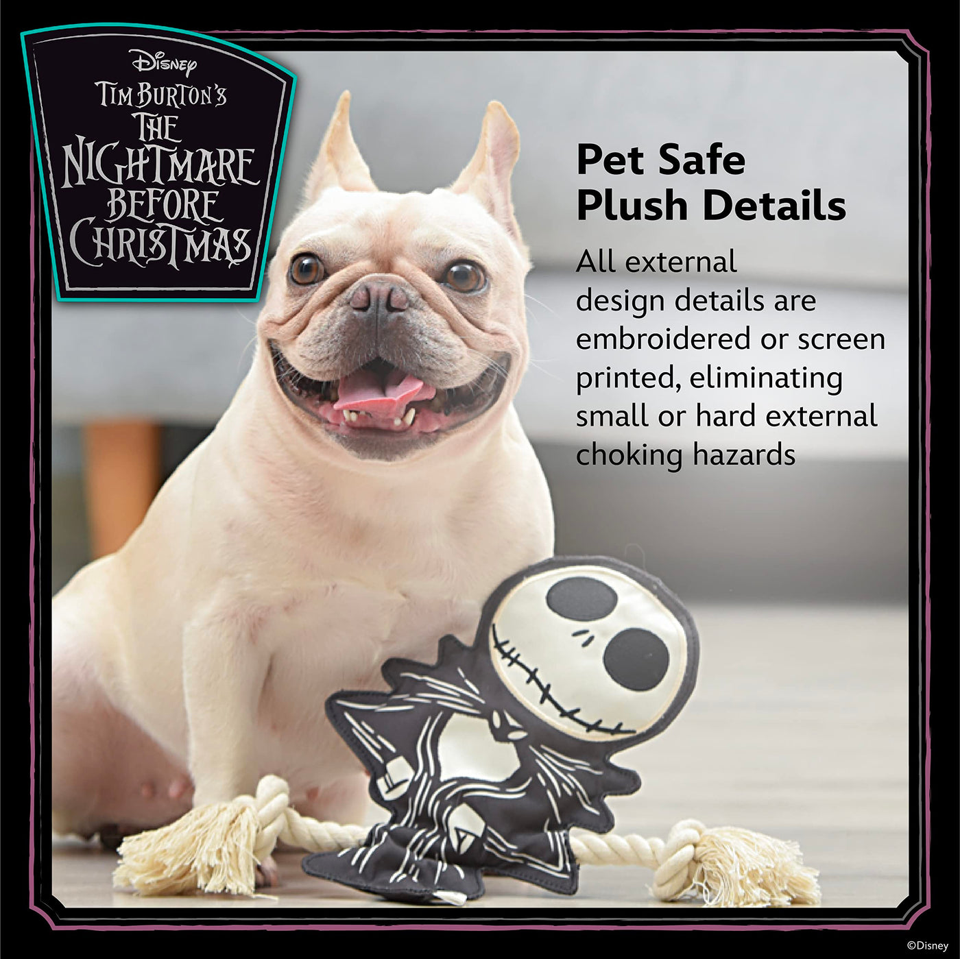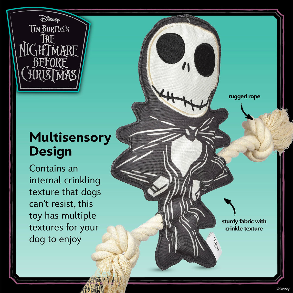 Now You Can Celebrate Your Love Of Nightmare Before Christmas With The Whole Family - Including Your Fur-Babies! This Flat Style Dog Toy Is Inspired By Jack Skellington, The Lovable Pumpkin King From Nightmare Before Christmas. The Jack Skellington Toy For Dogs Is The Perfect Way To Start Getting Ready For A Holiday Movie Marathon. This Dog Toy Is Perfect To Collect For Your Own Fur-Baby Or To Gift To The Nightmare Before Christmas Fans In Your Life. The Body Of This Toy Is Flat And Stuffingless And Has Two Ropes Sewn Into It For Extra Tug-Ability! Its Head Is Lightly Stuffed And Has A Crinkle Texture Plus A Squeaker Inside, Making This A Multisensory Activity For Your Dog To Enjoy. This Dog Toy For Jack Skellington Lovers Features Pet-Safe Plush Details, Meaning It Has No Hard Plastic, Sharp Corners, Or Edges. All Of The Design Details On This Pet Toy Are Either Embroidered Or Screen Printed. Its Best For Light To Medium Chewers Who Love To Tug, Toss, And Carry Their Plush Dog Toys. As With All Dog Toys, Please Supervise Your Pet When They Play With This Toy. What A Great New Way For Nightmare Before Christmas Fans And Their Pets To Collect Their Favorite Characters! Add These Dog Toys To Your Dogs Toybox Or Make Them Part Of A Gift For Nightmare Before Christmas Lovers. For A Truly Epic Puppy Playtime For Fans, Check Out Our Full Line Of Nightmare Before Christmas Dog Toys - Even Costumes! For More Movie-Themed Dog And Pet Toys, Apparel, Bowls, Feeding, And Accessories, Browse Our Fetch For Pets Brand Store. Your Satisfaction Is Our Priority* If You Have Any Questions Or Feedback On This Product, Please Reach Out To Us At Fetch For Pets.