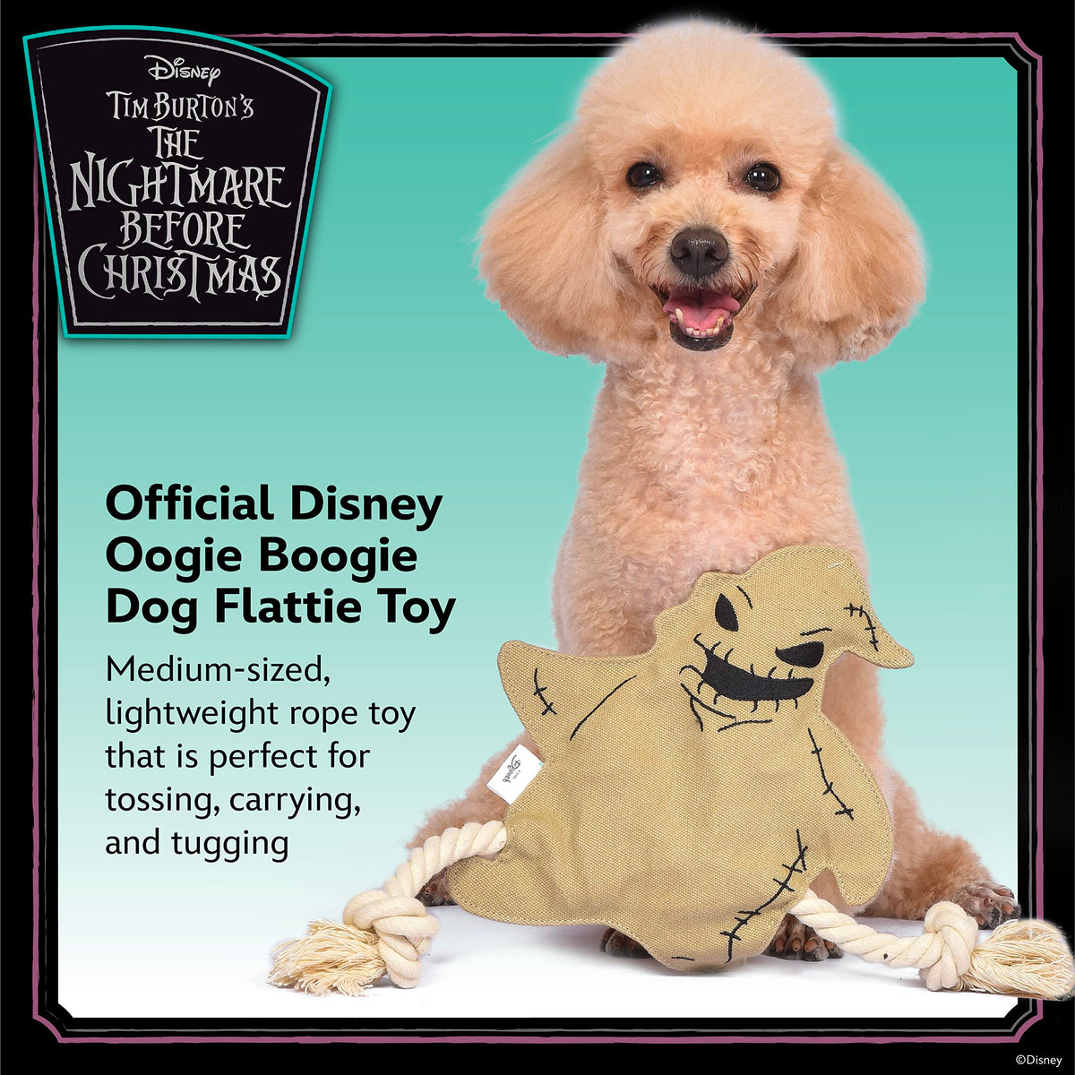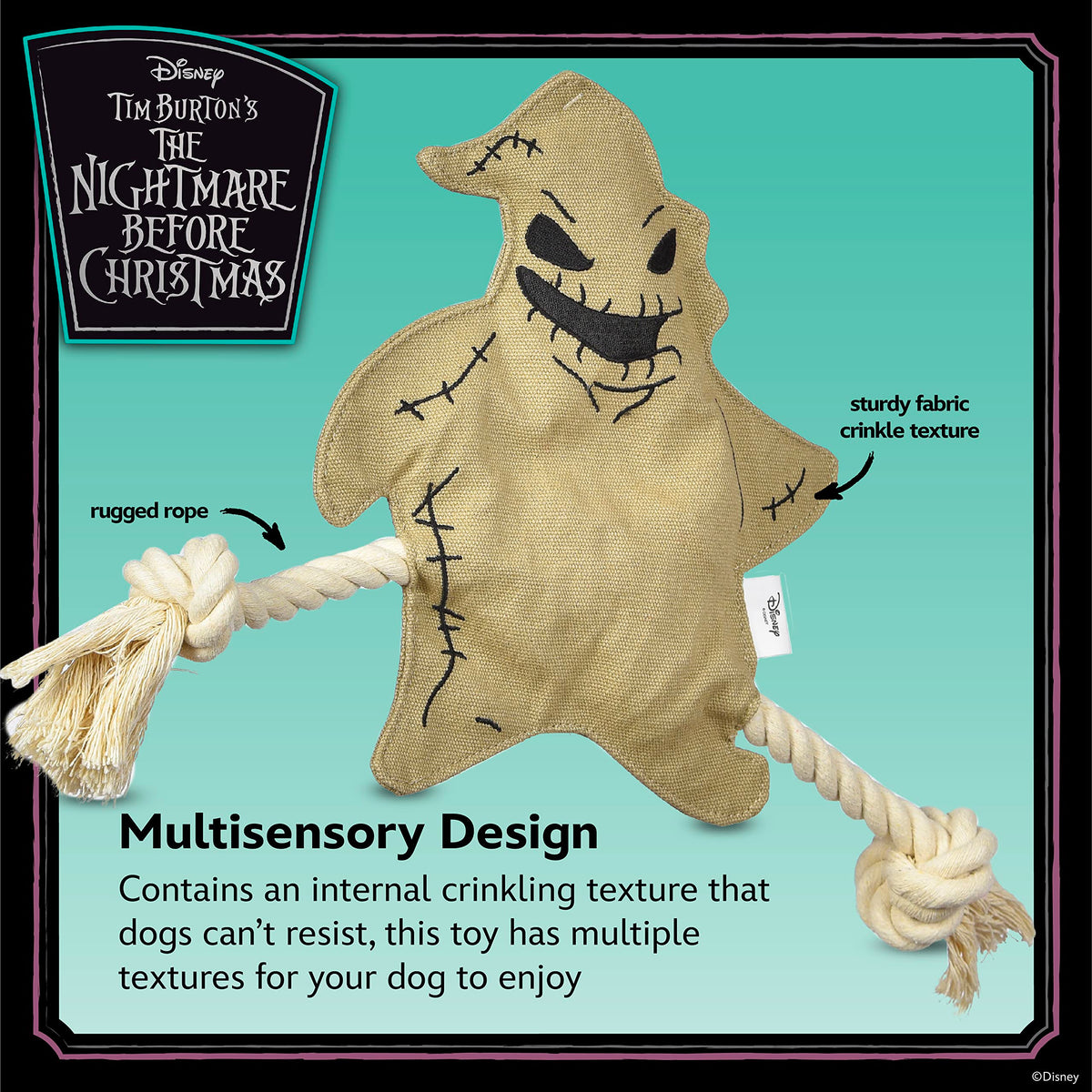 Now You Can Celebrate Your Love Of Nightmare Before Christmas With The Whole Family - Including Your Fur-Babies! This Flat Style Dog Toy Is Inspired By Oogie Boogie, The Scary Boogie Man From Nightmare Before Christmas. The Oogie Boogie Toy For Dogs Is The Perfect Way To Start Getting Ready For A Holiday Movie Marathon. This Dog Toy Is Perfect To Collect For Your Own Fur-Baby Or To Gift To The Nightmare Before Christmas Fans In Your Life. The Body Of This Toy Is Flat And Stuffingless And Has Two Ropes Sewn Into It For Extra Tug-Ability! Its Head Is Lightly Stuffed And Has A Crinkle Texture Plus A Squeaker Inside, Making This A Multisensory Activity For Your Dog To Enjoy. This Dog Toy For Nightmare Before Christmas Lovers Features Pet-Safe Plush Details, Meaning It Has No Hard Plastic, Sharp Corners, Or Edges. All Of The Design Details On This Pet Toy Are Either Embroidered Or Screen Printed. Its Best For Light To Medium Chewers Who Love To Tug, Toss, And Carry Their Plush Dog Toys. As With All Dog Toys, Please Supervise Your Pet When They Play With This Toy. What A Great New Way For Nightmare Before Christmas Fans And Their Pets To Collect Their Favorite Characters! Add These Dog Toys To Your Dogs Toybox Or Make Them Part Of A Gift For Nightmare Before Christmas Lovers. For A Truly Epic Puppy Playtime For Fans, Check Out Our Full Line Of Nightmare Before Christmas Dog Toys - Even Costumes! For More Movie-Themed Dog And Pet Toys, Apparel, Bowls, Feeding, And Accessories, Browse Our Fetch For Pets Brand Store. Your Satisfaction Is Our Priority* If You Have Any Questions Or Feedback On This Product, Please Reach Out To Us At Fetch For Pets.