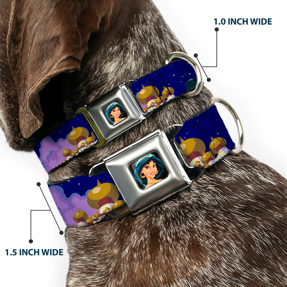 Disney Pet Collar, Dog Collar Metal Seatbelt Buckle, Aladdin Jasmine Magic Carpet Ride Scenes, 15 To 24 Inches 1.0 Inch Wide