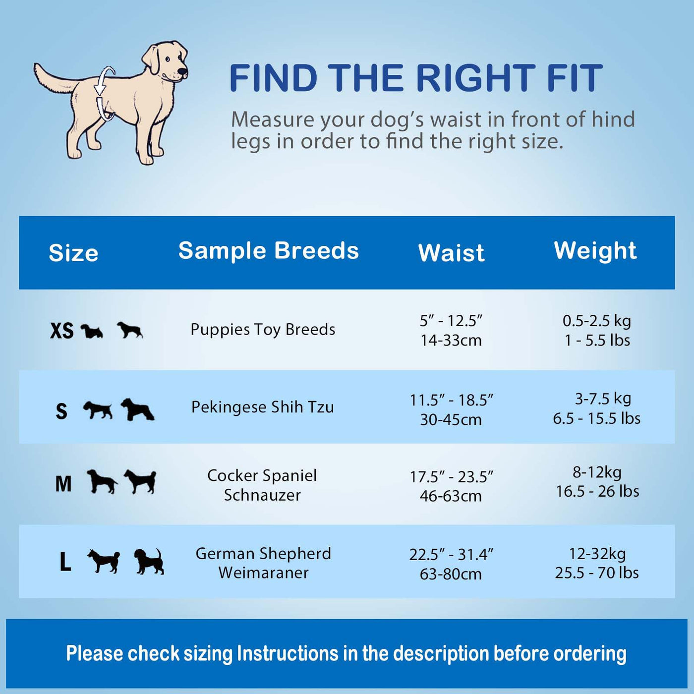 Wetness Indicator: Dog male wraps come with the Wetness Indicator When dog diapers absorbs water the color strip changes from green to yellow is a good cue for the replacement of a new dog diapers.