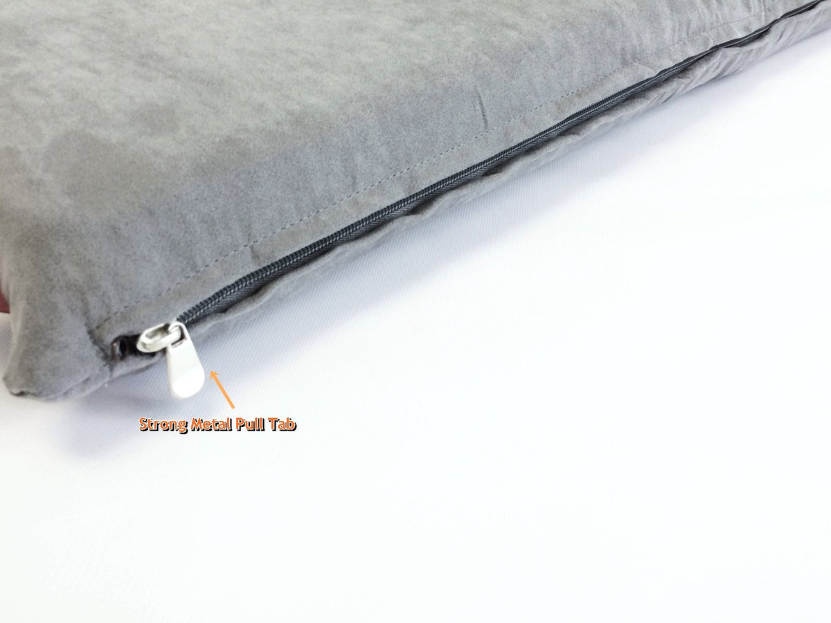 The listing is external replacement cover only without any stuffing or insert. This 45X27X3 inch zipper cover is made with durable fabric for easy cleaning and maintenance. Our external cover is interchangeable at top and bottom side and great for pets that are allergic to synthetic fabrics. The external cover is machine washable and dry-able. This listing is for external replacement cover only, please visit econsumersusa storefront here at amazon for a complete dog bed with memory foam pillow or pad in small, medium, large, XL to XXL jumbo sizes. Our pet bed cover made with high quality fabric to ensure the ultimate comfort and long lasting that rarely sold in other retailer due to the higher cost in material. We believe that our pets deserve a comfortable bed like us for the fraction of the cost. The size of this cover is designed to fit on 45'X27'X3' inch pad or 48'X29' inch pillow by econsumersusa pet bed product. The cover also designed to fit bed pillows.