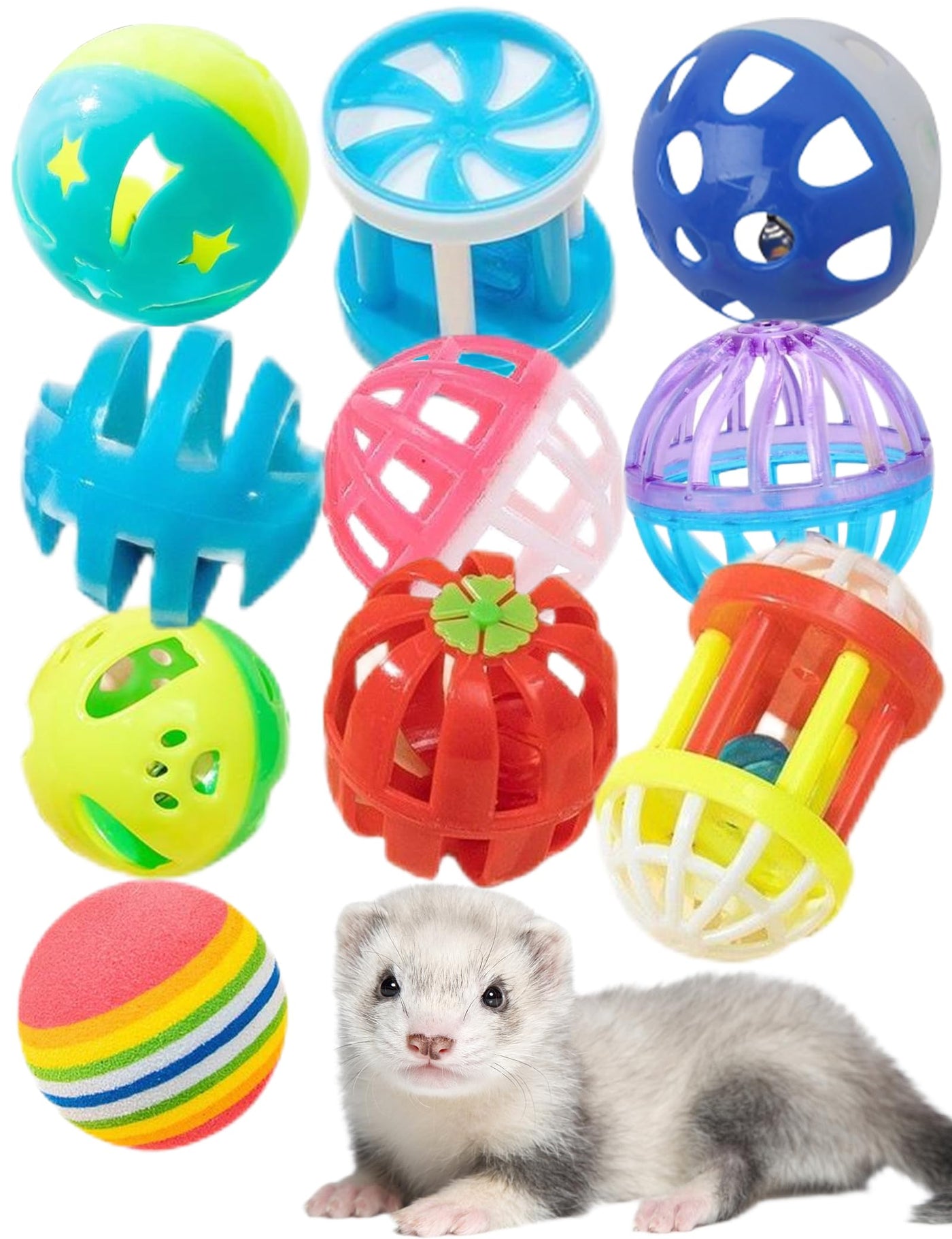 Diyuqishi Ferret Toys 10-Pack Bell Balls, Sturdy & Fun For All Ferret Sizes, Safe Pp Material, Colorful & Interactive, Teeth Hea