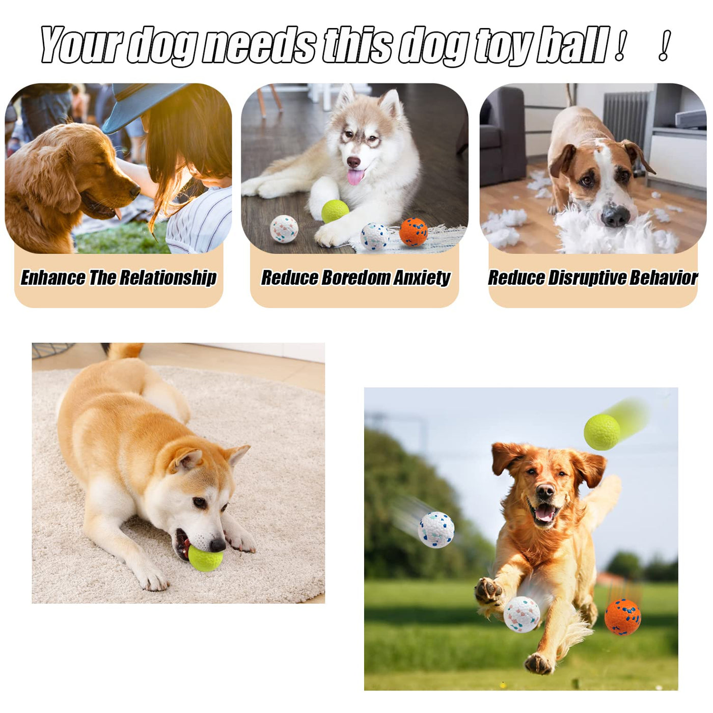 NEW DURABLE MATERIAL:These dog balls are made of new E-TPU material through high-tech vapor compression. is a durable lightweight solid dog ball that is soft and bouncy perfect for puppy outdoor play and reducing boredom and anxiety.