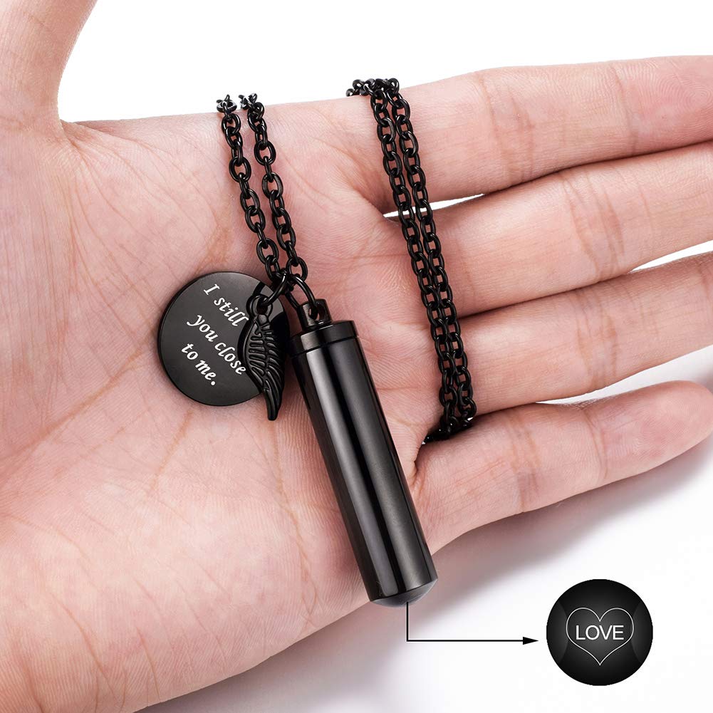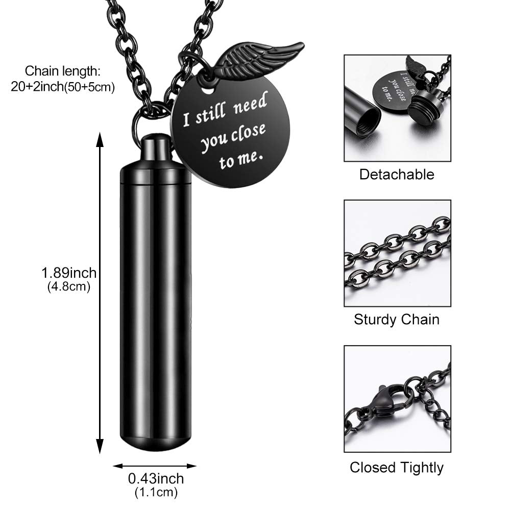 Dletay Cylinder Cremation Jewelry Urn Necklace For Ashes Memorial Ashes Necklace With Angel Wing Charm Memorial Keepsake For Pet Human-I Still Need You Close To Me