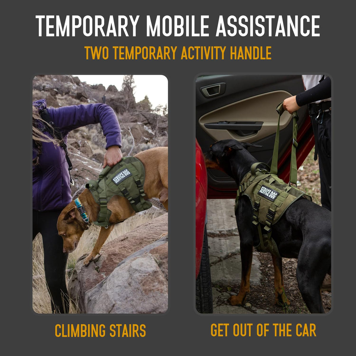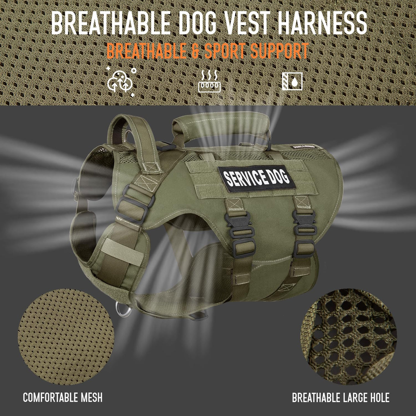 Dnallrino Service Dog Vest For Large Dog, Military Mesh Breathable Lift Harness With Molle Vest With 39G Metal Buckle For Traini