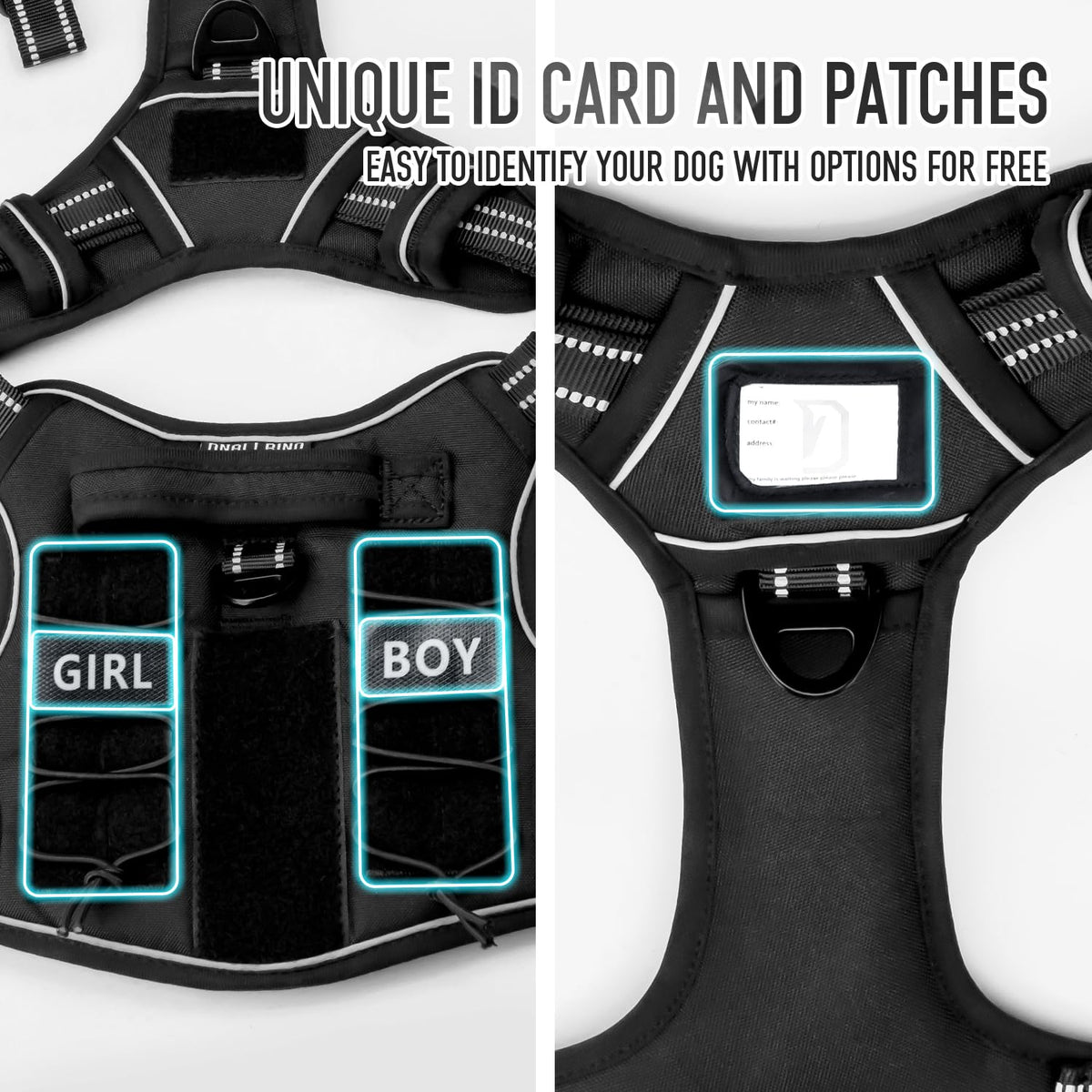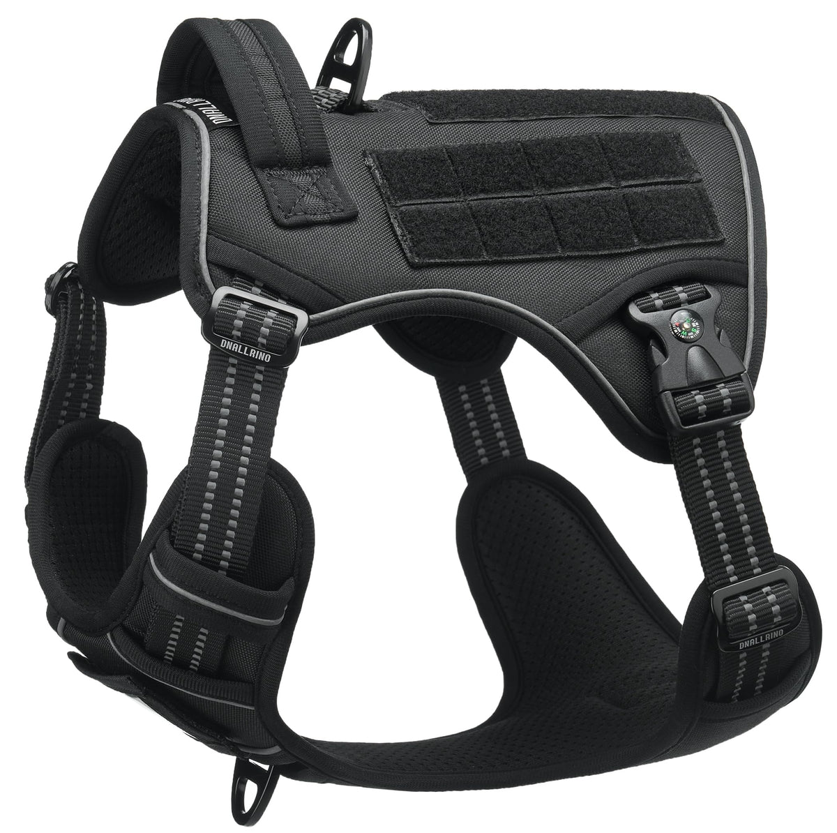 Dnallrino Tactical Dog Harness For Medium Large Dogs, Black Dog Harness With Id Card, Reflective Hiking Harness For Training Eas