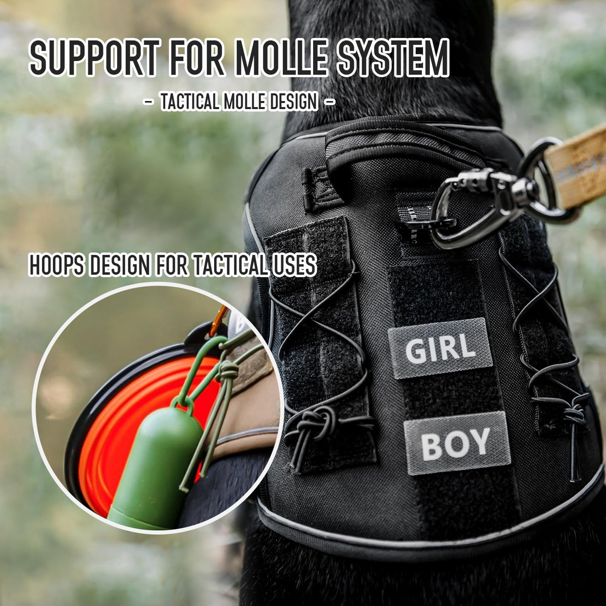 Dnallrino Tactical Dog Vest Harness No Pull Is Made Of 1050D Nylon Main Material With Quick-Release Metal Buckles And Flexible, Adjustable Pet Harness Straps To Bring More Comfort And Skin-Friendly Experience To Dogs In Daily Walking Training And Hiking. The K9 Reflective Dog Harness Will Give Your Dog A Sense Of Security When Going Out At Night. The Military Dog Harness Can Also Be Used As A Service Dog Harness In Daily Life! Dnallrino Will Work With You To Guard Our Doggy Best Friend!!!:)