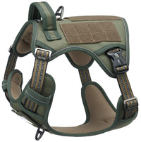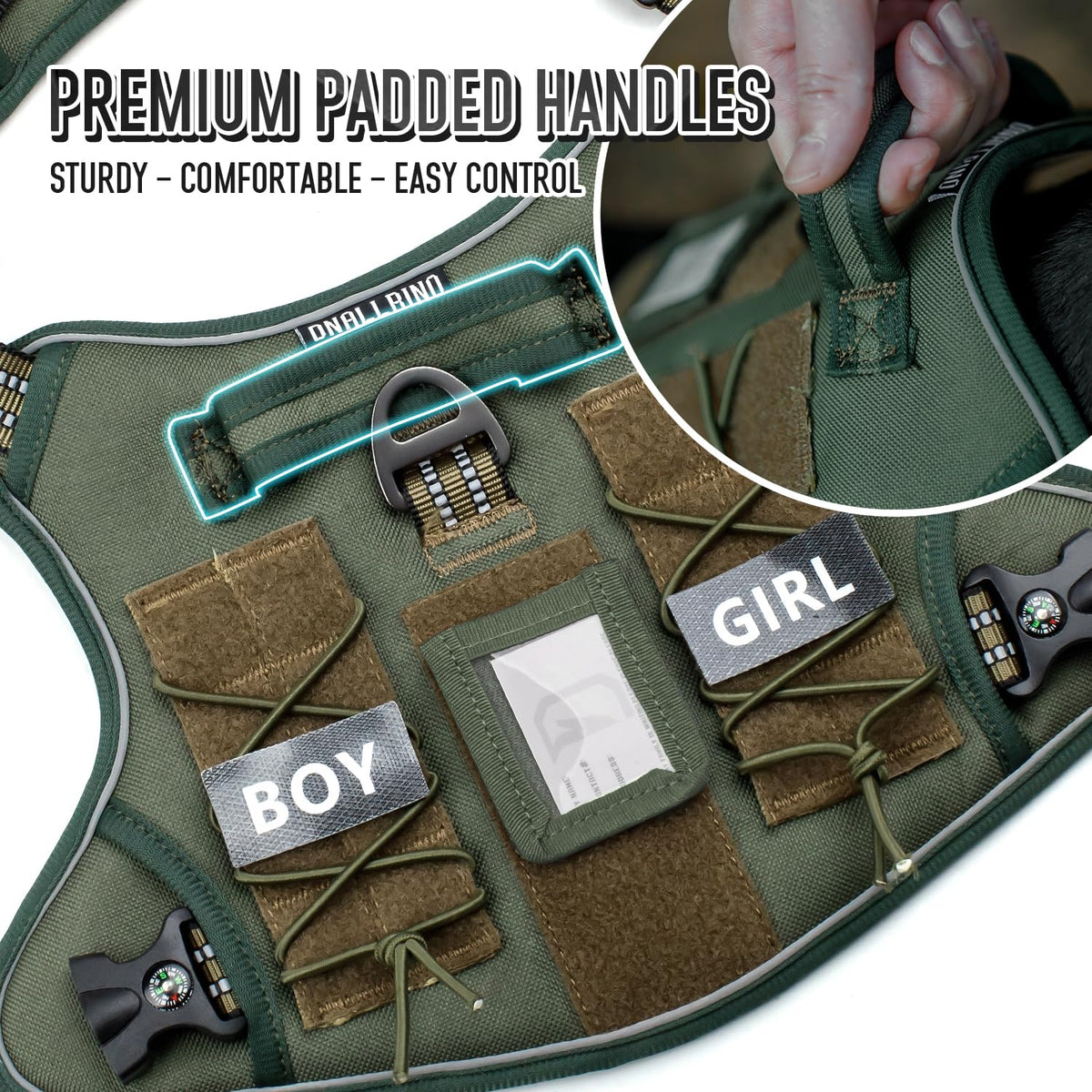 Dnallrino Tactical Dog Harness For Medium Large Dogs, Green Dog Harness With Id Card, Reflective Hiking Harness For Training Eas