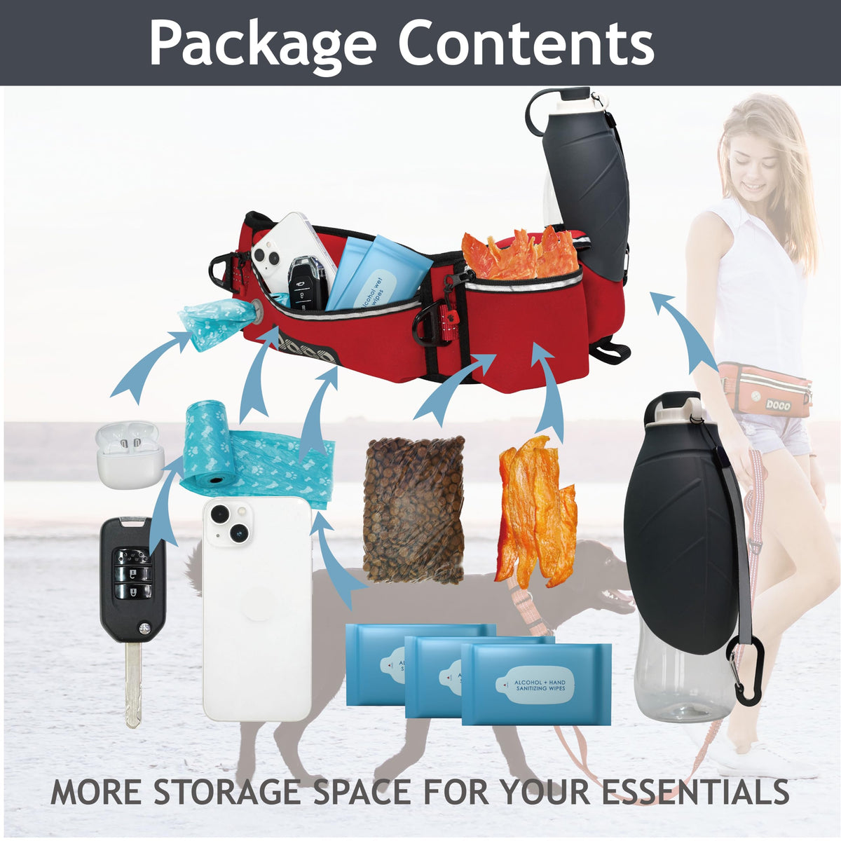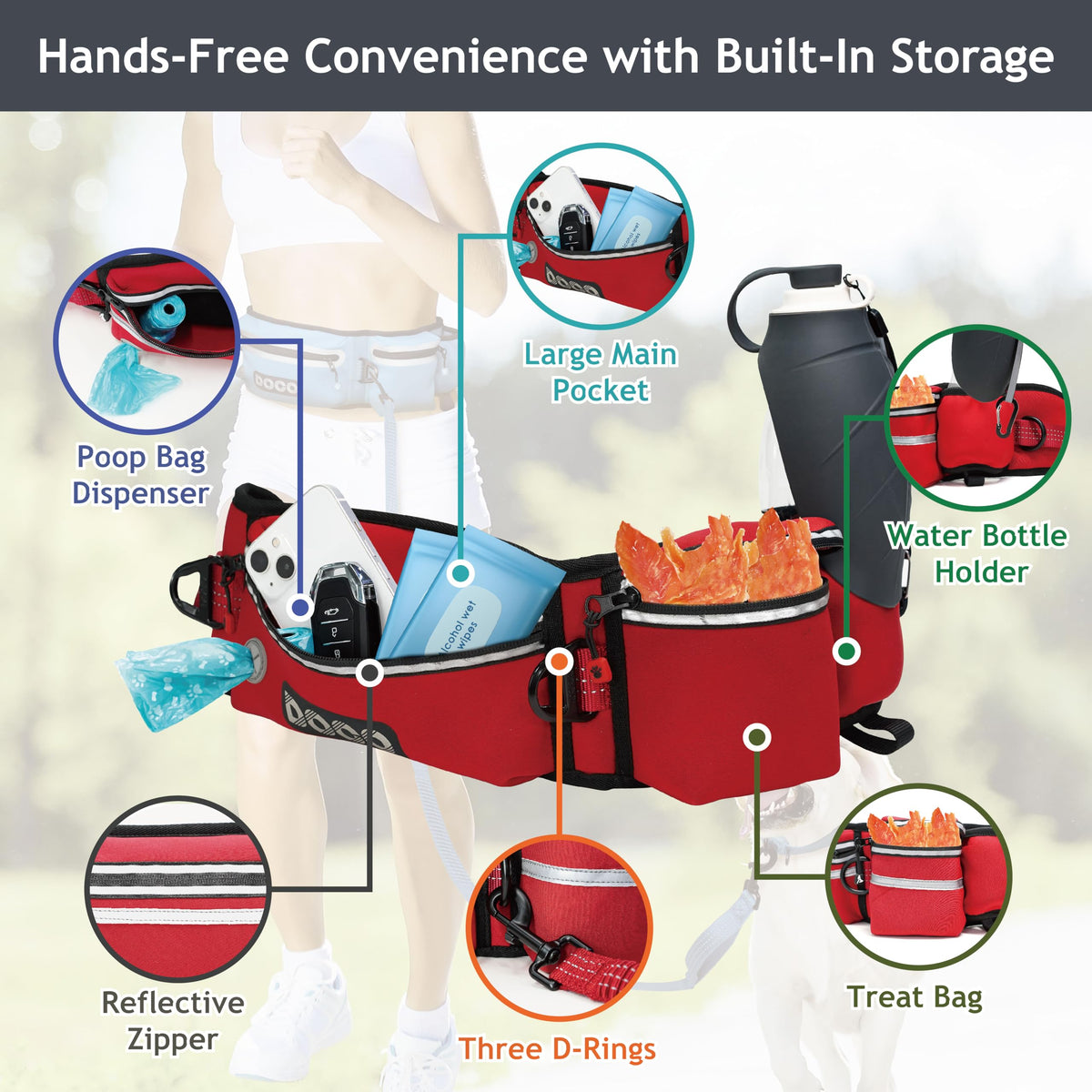 DOCO Hands Free Dog Leash for Running Walking Jogging Training Hiking Retractable Bungee Dog Waist Leash for Medium-Large Dogs. Adjustable Waist Belt Reflective Stitches Dual Handle
