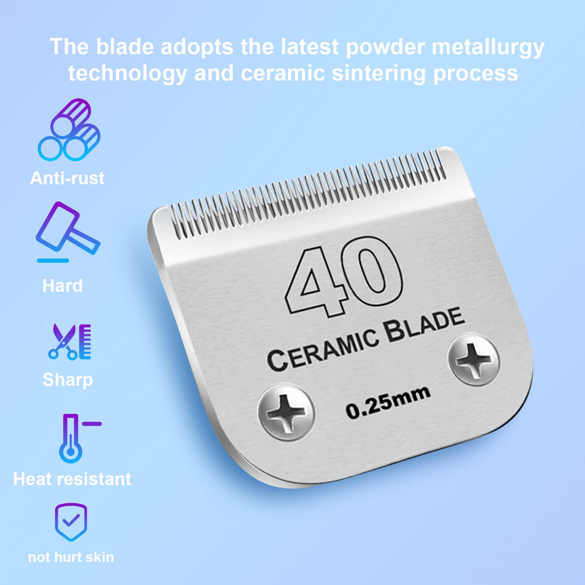 DODAER 10 Pcs Detachable Pet Dog Grooming Clipper Ceramic Blade Sets,Compatible with Andis Size 40 1/100''(0.25mm),Compatible wi