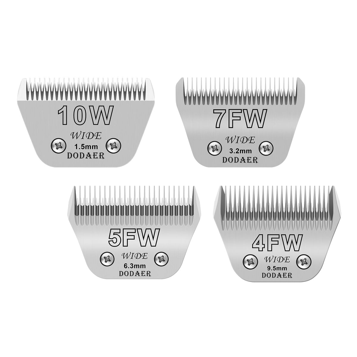 Dodaer 10W+7Fw+5Fw+4Fw Wide Blades For Dog Grooming,Compatible With Andis,Oster A5,Wahl Km10 Clippers,Cutting Length 1/16'' To 3