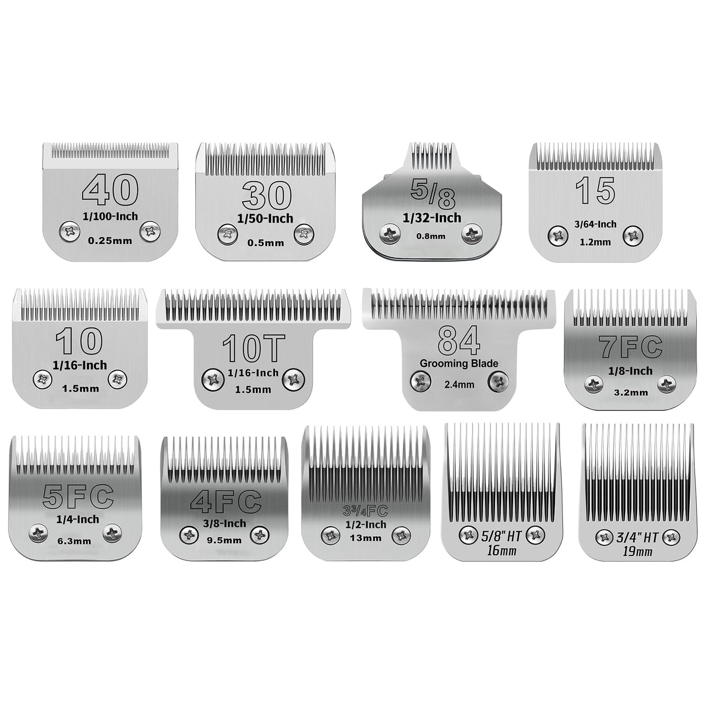 DODAER 13pcs Pet Dog Grooming Clipper Stainless Steel Blade Kit,Compatible with Andis/Oster A5,Wahl KM10 Series Clippers(size 40