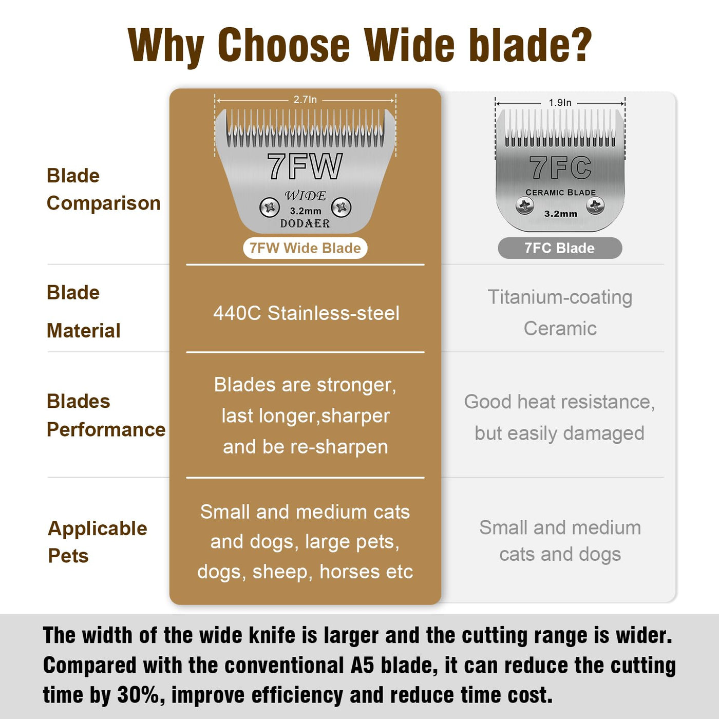 Dodaer 2 Pack 7 Wide Blades For Dog Grooming,Compatible With Andis,Oster A5,Wahl Km10 Clippers,Cutting Length 1/8'' (3.2Mm)