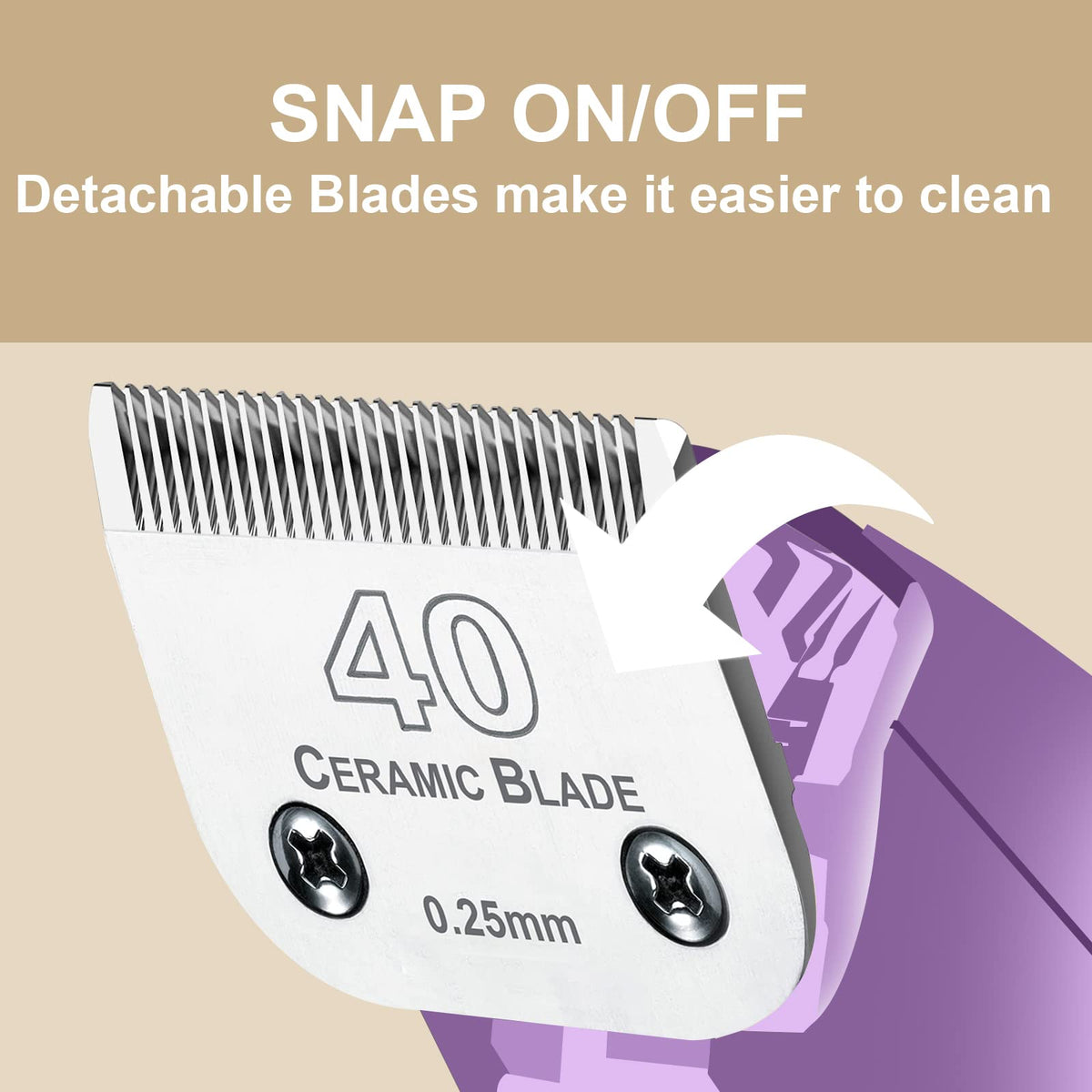 Dodaer 2 Pack Detachable Pet Dog Grooming Clipper Ceramic Blade,Compatible With Andis Size 40 Cut Length 1/100''(0.25Mm),Compati
