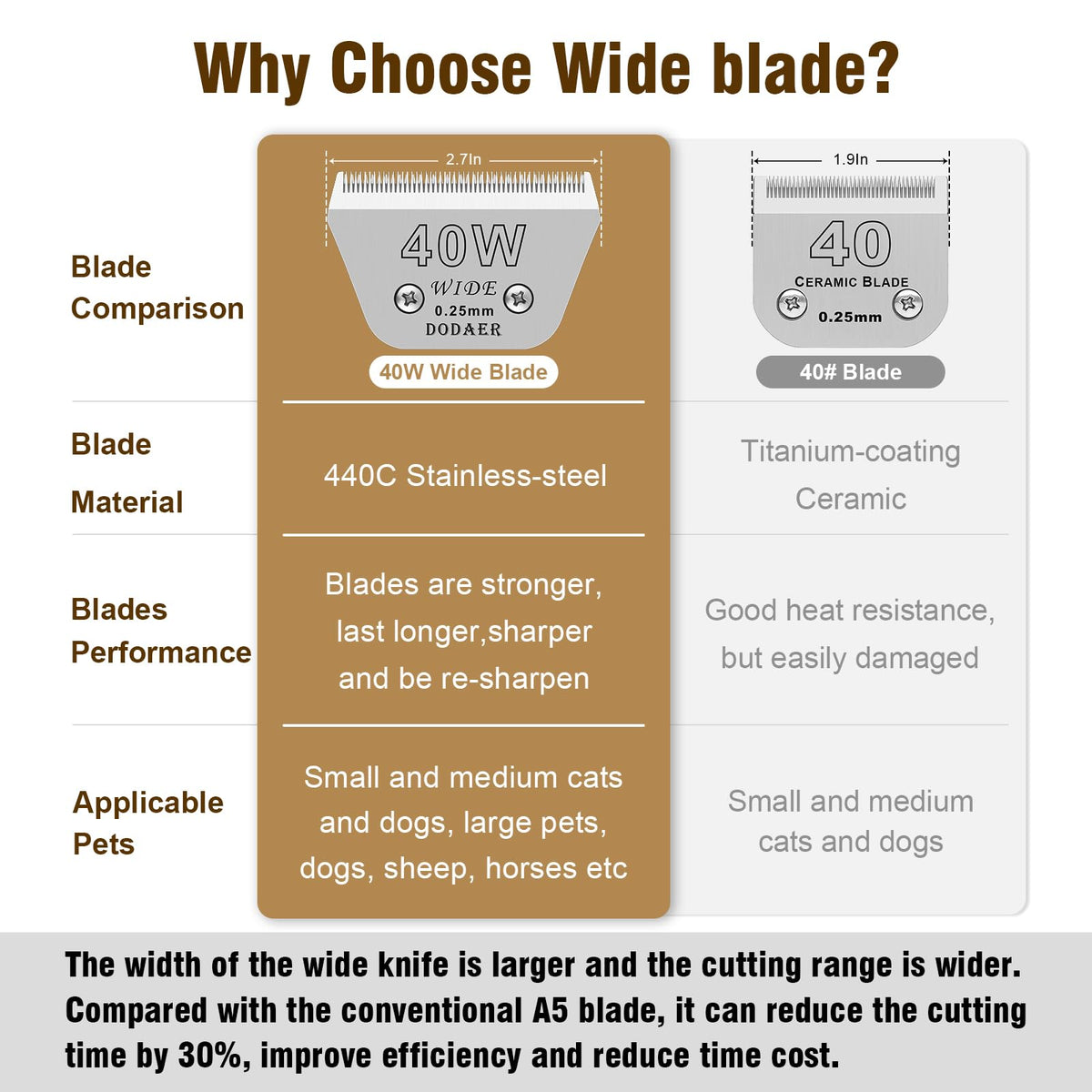 Dodaer Detachable Pet Dog Grooming Blades-Size 40W Dog Grooming Wide Blade,Cutting Length 1/100'',Compatible With Andi-S,Oster A