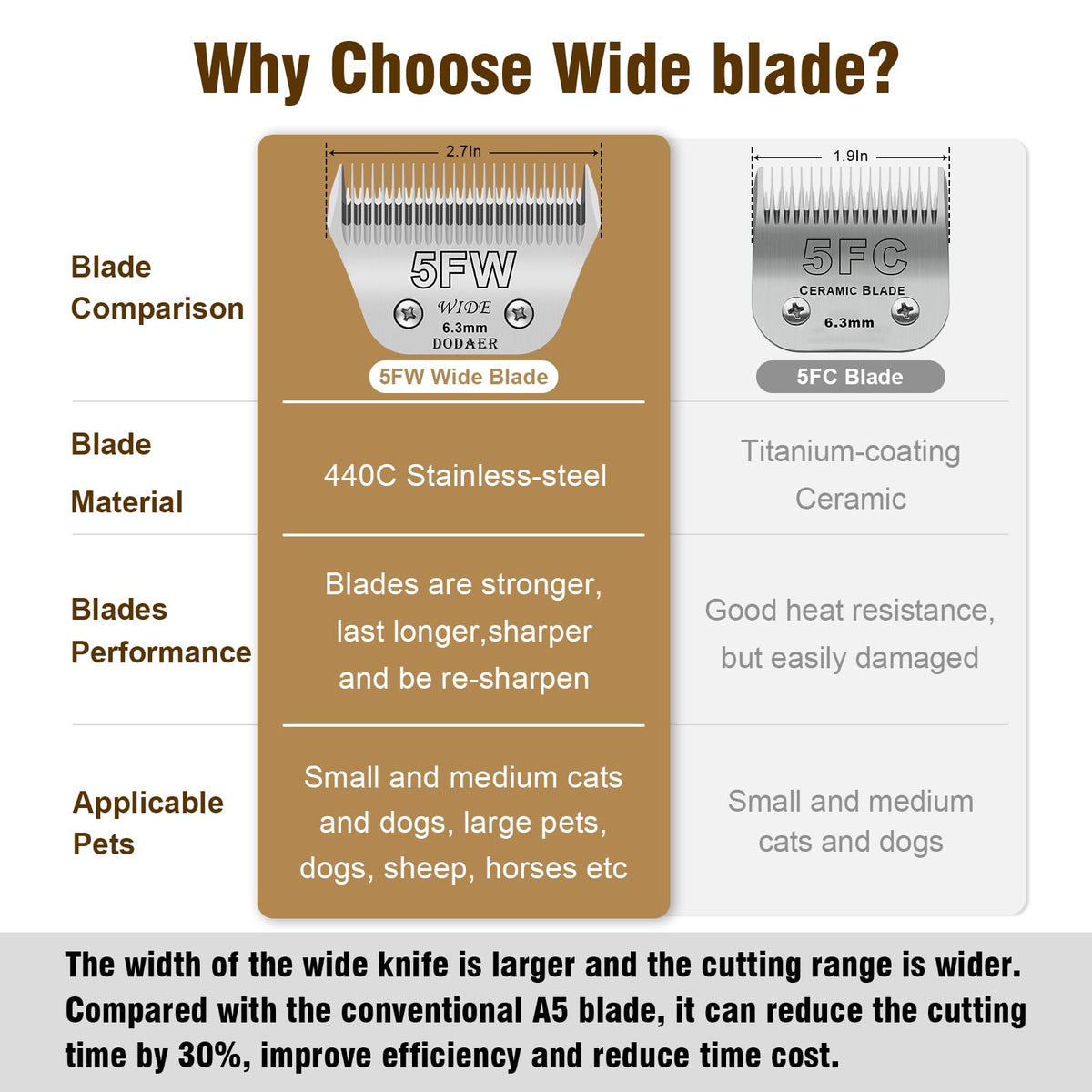 Dodaer Detachable Pet Dog Grooming Blades-Size 5Fw Dog Grooming Wide Blade,Cutting Length 1/4'' 6.3Mm,Compatible With Most Andis