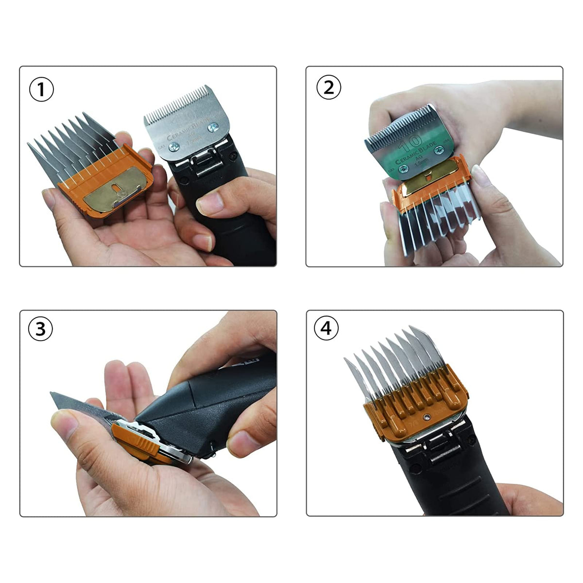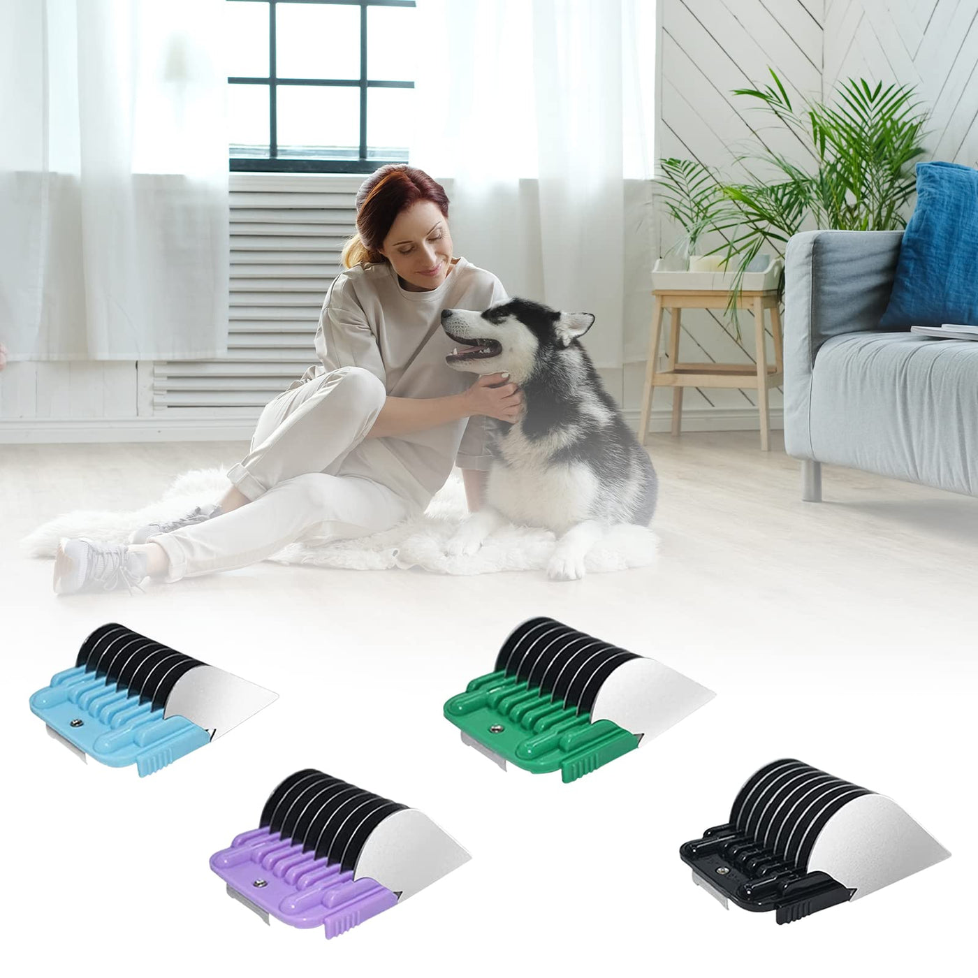 Dodaer Professional Animal Stainless Steel 4 Color Guide Comb Set For 10#/15#/30#Detachable Blade,Compatible With Andis, Oster A