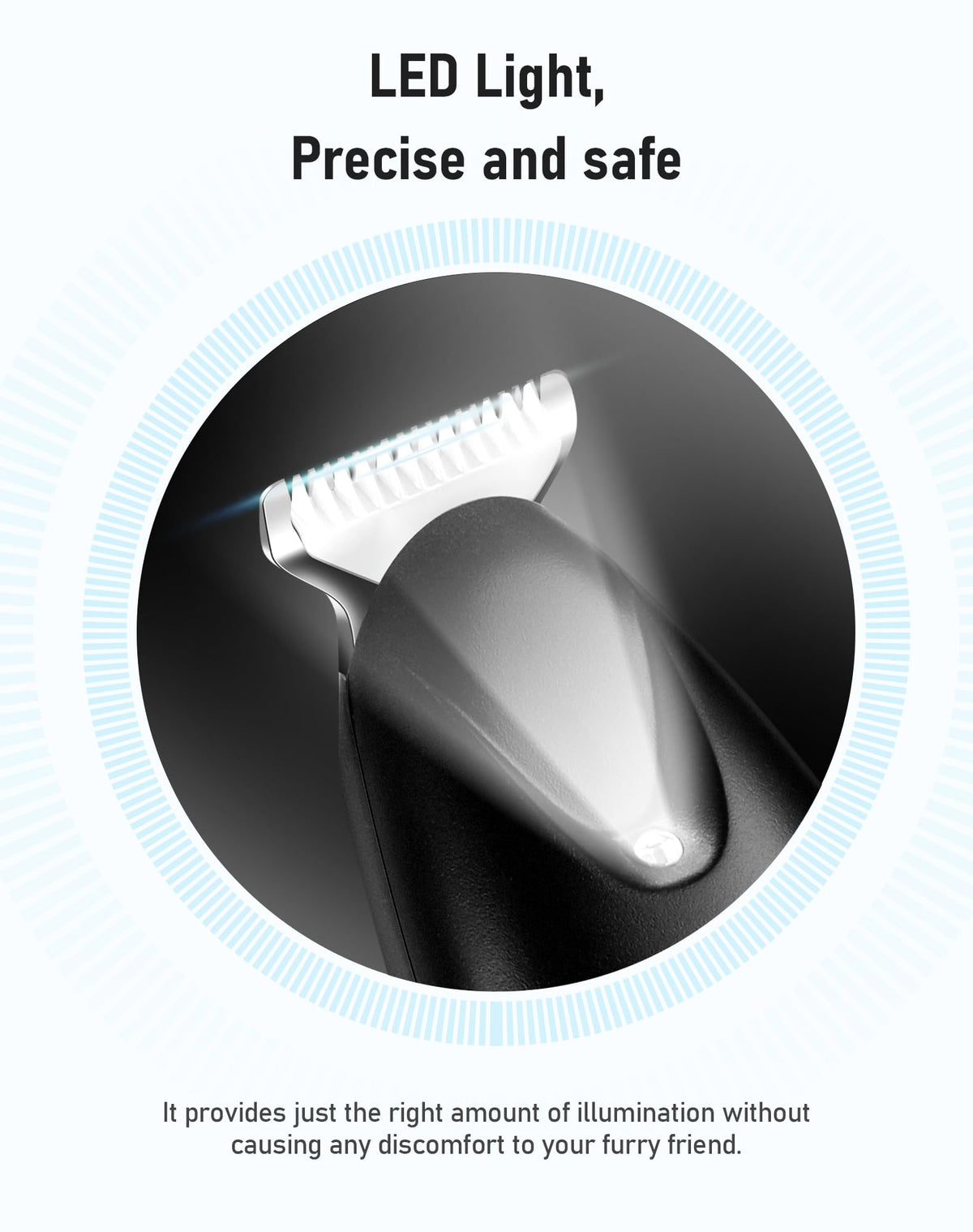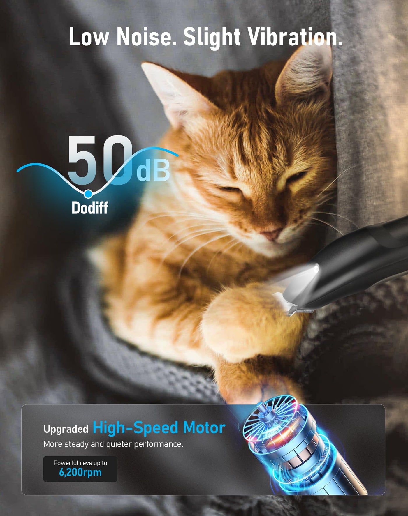 dodiff Dog Paw Trimmer with LED Light, Rechargeable Cordless Dog Clippers with Wider Blade for Grooming Pet's Paw Pad, Low Noise
