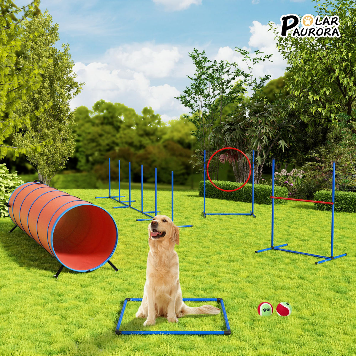 This Dog Agility Training Equipment Set Will Train Your Furry Guy To Be A Great Athlete!Providing Quality Exercise And A Healthy Body While Greatly Enhancing The Interactive Bond And Trust Between Dog And Human. Among The Multi-Faceted Design Ideas, We Selected A Variety Of Top-Quality Materials For The Build.190T Tear-Resistant Polyester Fabric Is Not Easily Deformed, Resistant To Breakage And Has Strong Impact Resistance. Selected Environmentally Friendly Abs Material Is Non-Toxic And Tasteless, Light Weight, Easy To Set And Storage.High-Quality Pvc Material Is Solid And Durable, Not Easy To Bend And Damage, So That The Service Life Is Guaranteed.Pets Are Human'S Best Friend, And Companionship Is Mutual,Use The Polar Aurora Agility Training Equipment Set For Dogs To Share A Happy Time With Your Furry Sidekick Today!
