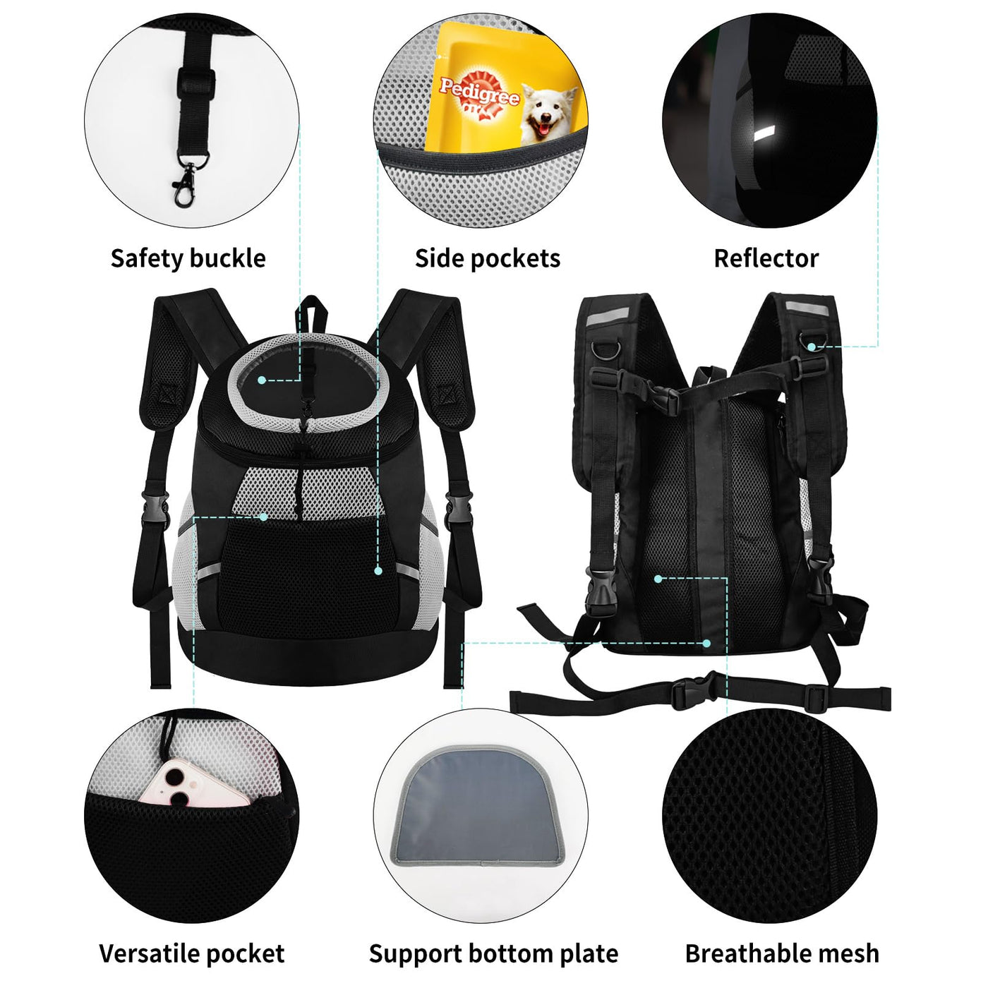Dog Backpack Carrier, Front Chest Carrier For Cat Small Dogs, Pet Carrying Bag For Travel Hiking Cycling Outdoor Black S (Sugges