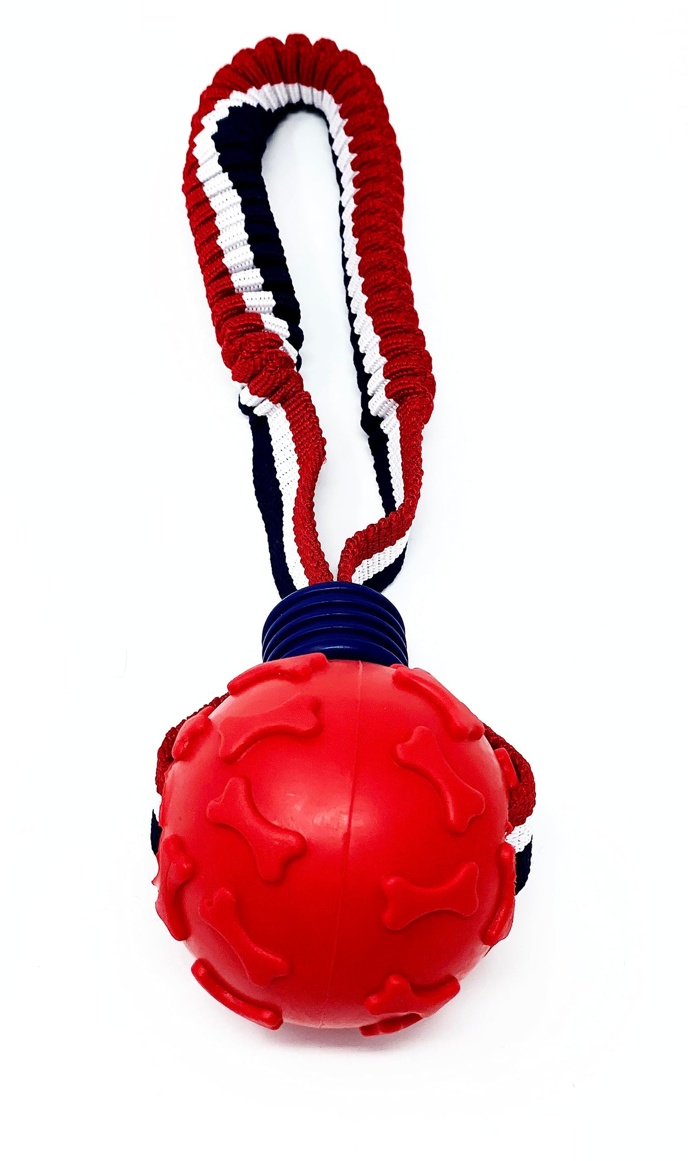 Dog Balls Squeaky Balls For Dogs -Dog Toys Including 1 Solid Flex Dog Toy Play Ball With Handle (Red White Blue)