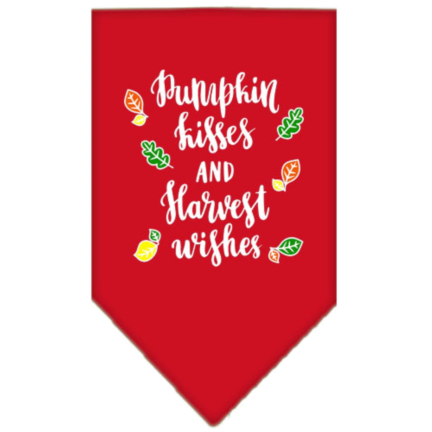 Dog Bandana Screen Printed, "Pumpkin Kisses & Harvest Wishes" Red Large
