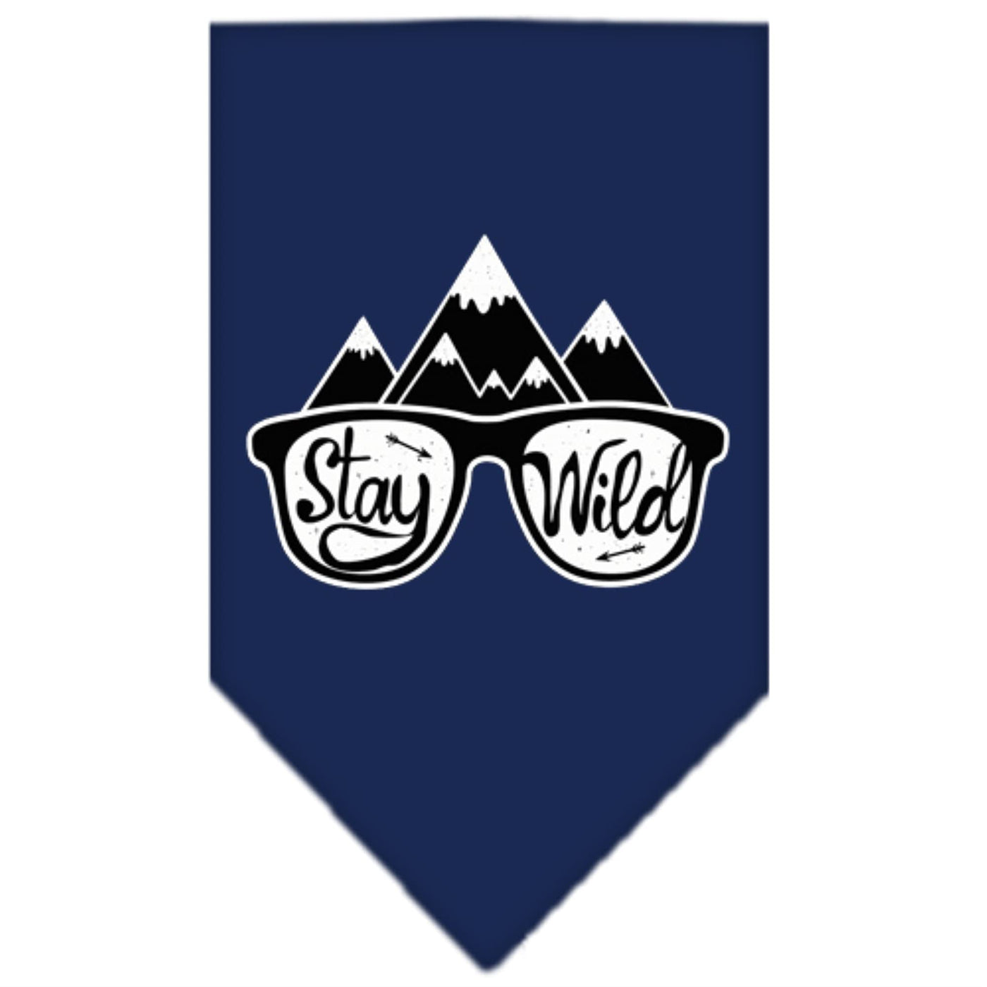 Dog Bandana Screen Printed, "Stay Wild" Navy Blue Large