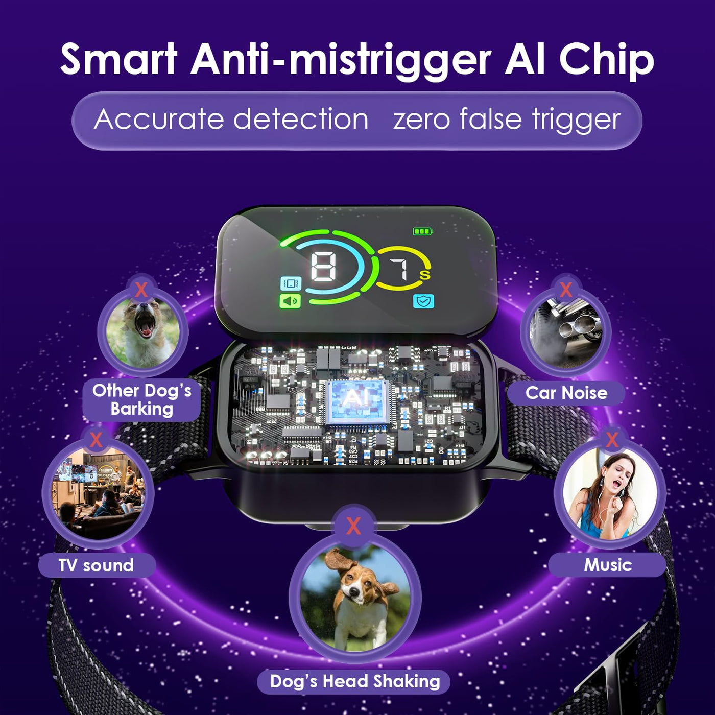 Dog Bark Collar 2 Pack,No Shock Rechargeable Smart Barking Collar For Small Medium Mini Dogs,Anti-Bark Collar For Small Dogs,Bar