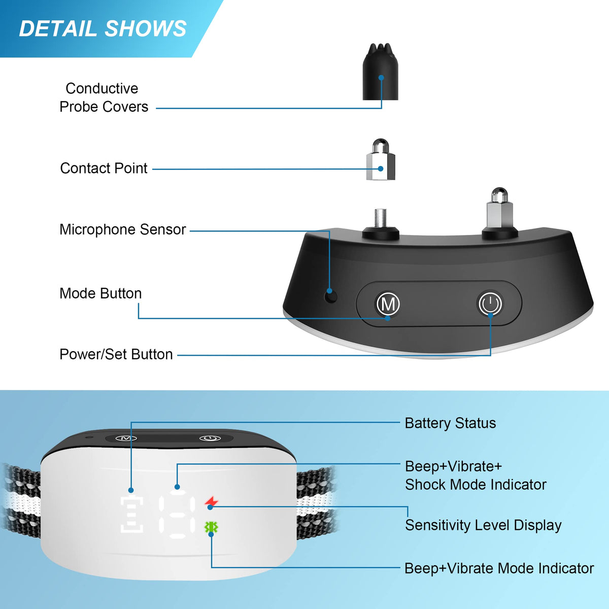 Dog Bark Collar,Bark Collar With Adjustable Sensitivity For Large Medium Small Dogs,Smart Bark Collar Anti False Trigger,Recharg