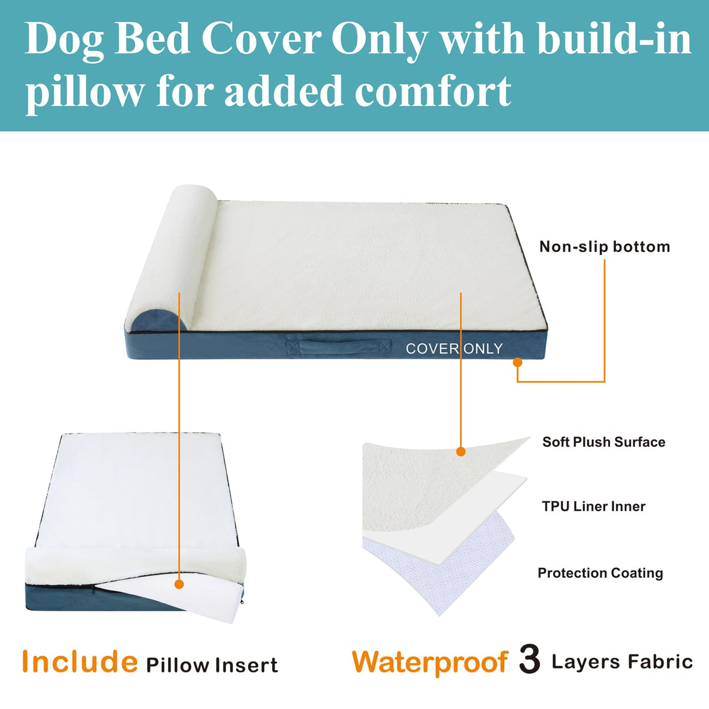 Dog Bed Covers Replacement Washable, Soft Plush Waterproof Dog Bed Cover With Zipper And Removable Built-In Orthopedic Pillow, 4