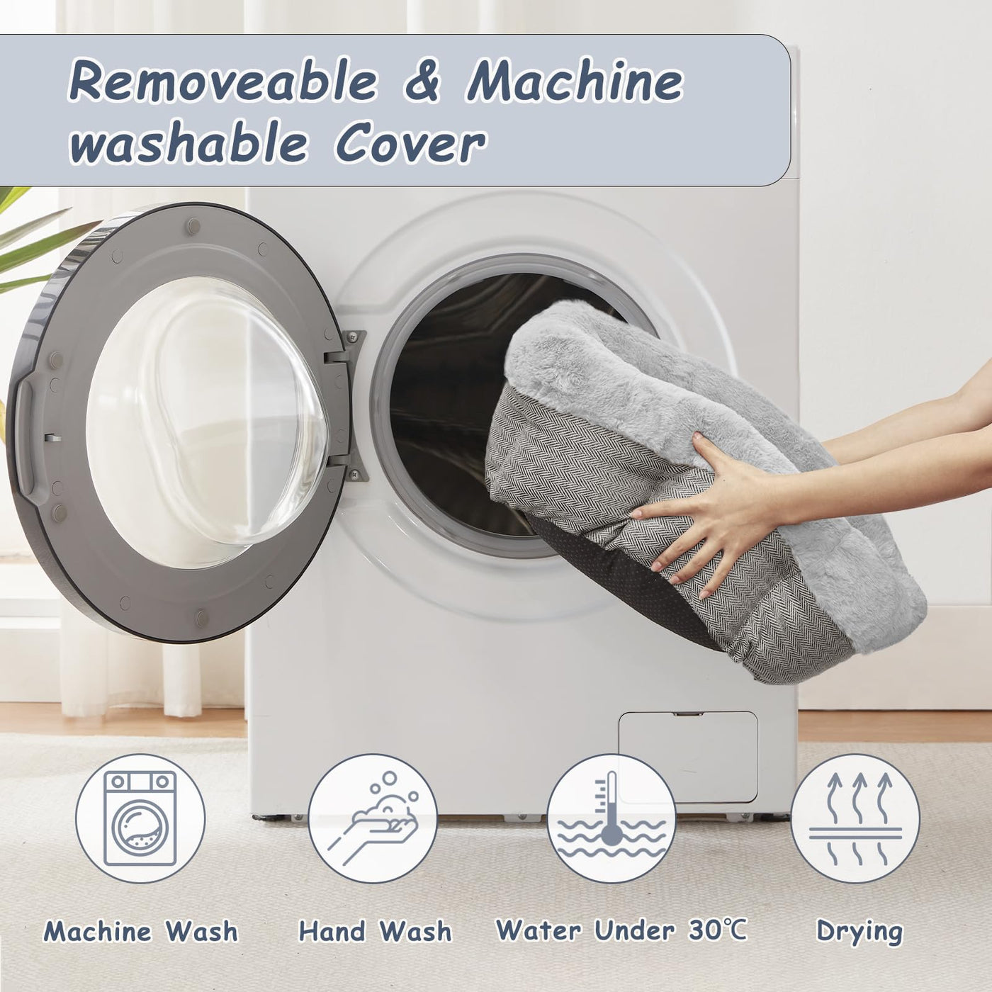 ?WASHING&NOTICE? Our puppy cat beds is machine washable and the inner removable&detachable pillow makes the washing easily. Opened the vacuum-packing please reshape the bed and waiting for 12-24 hours to recovery.