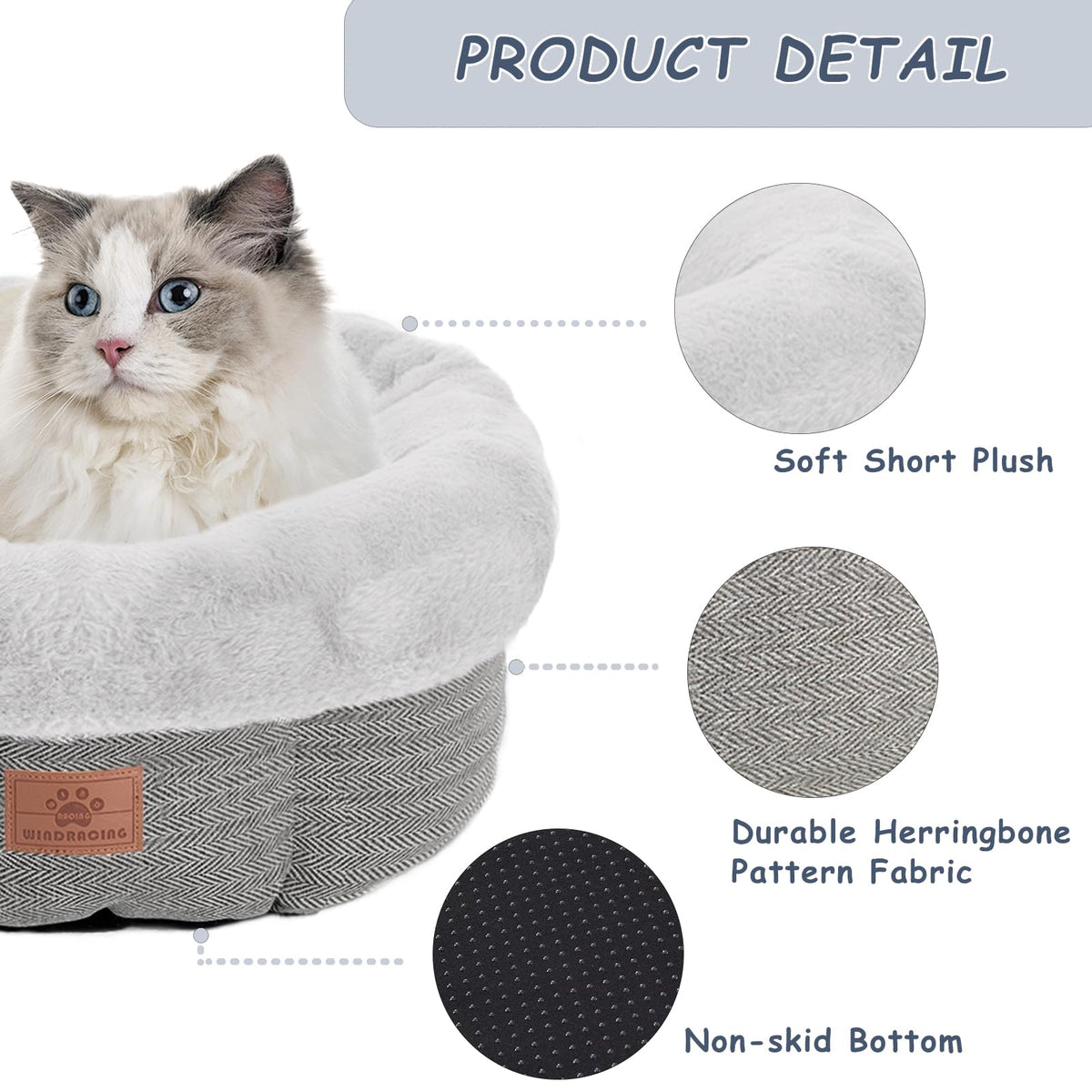 Q: How does the design of the Cat Bed help reduce pet anxiety?A: The wraparound donut design with raised plush sides provides comfortable support for your pet's head and neck, creating a sense of security and warmth that helps reduce anxiety.