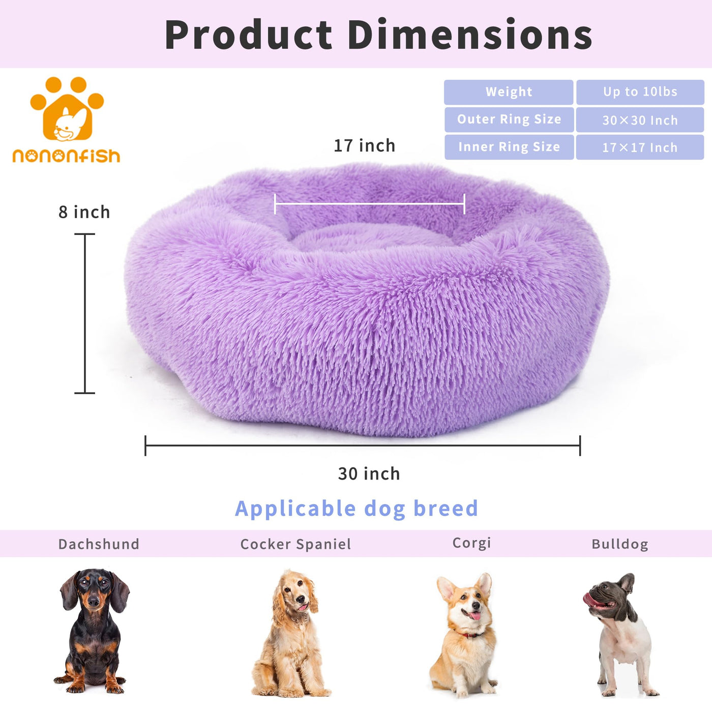 Why Choose Nononfish Anti Anxiety Dog Bed?Our Belief: We Believe That Pets Are Members Of Our Family And They Deserves The Best. Nononfish Company Member Strive To Provide Affordable And High Quality, Easily Accessilble Fluffy Dog Bed To All Cute Dogs, Cats, Puppies Or Kittens.Our Technology: All Durable Dog Bed Is Made With Exquisite Workmanship, Lightweight And Portable. Portable Dog Bed Comes With Sealed Bag, Which Is Very Easy For Transportation And Convenient To Carry It In The Car. Faux Fur Dog Bed Are Available In Beautiful Natural Colors, Different Colors Can Easily Match With Any Room D Cor!Orthopedic Dog Bed Is Designed To Help Pet To Sleep More Soundly.V Provide Orthopedic And Joint Supportv Provides Warmth And Safetyv Non-Slip & Dirt-Resistant Bottomsv Safe In The Washer And Dryerv Made With Pet-Safe Materials