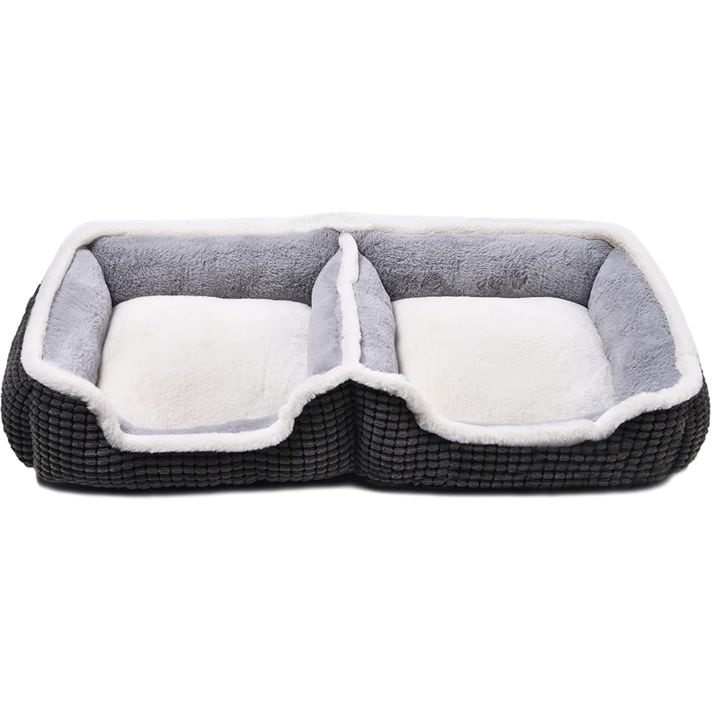 Dog Beds For Two Small Dogs, Double Cat Beds For Indoor Cats,Washabel Super Soft Durable Kitten Bed And Puppy Bed,?nti-Slip & Water-Resistant Bottom,Luxury Rectangle Grey Pet Bed