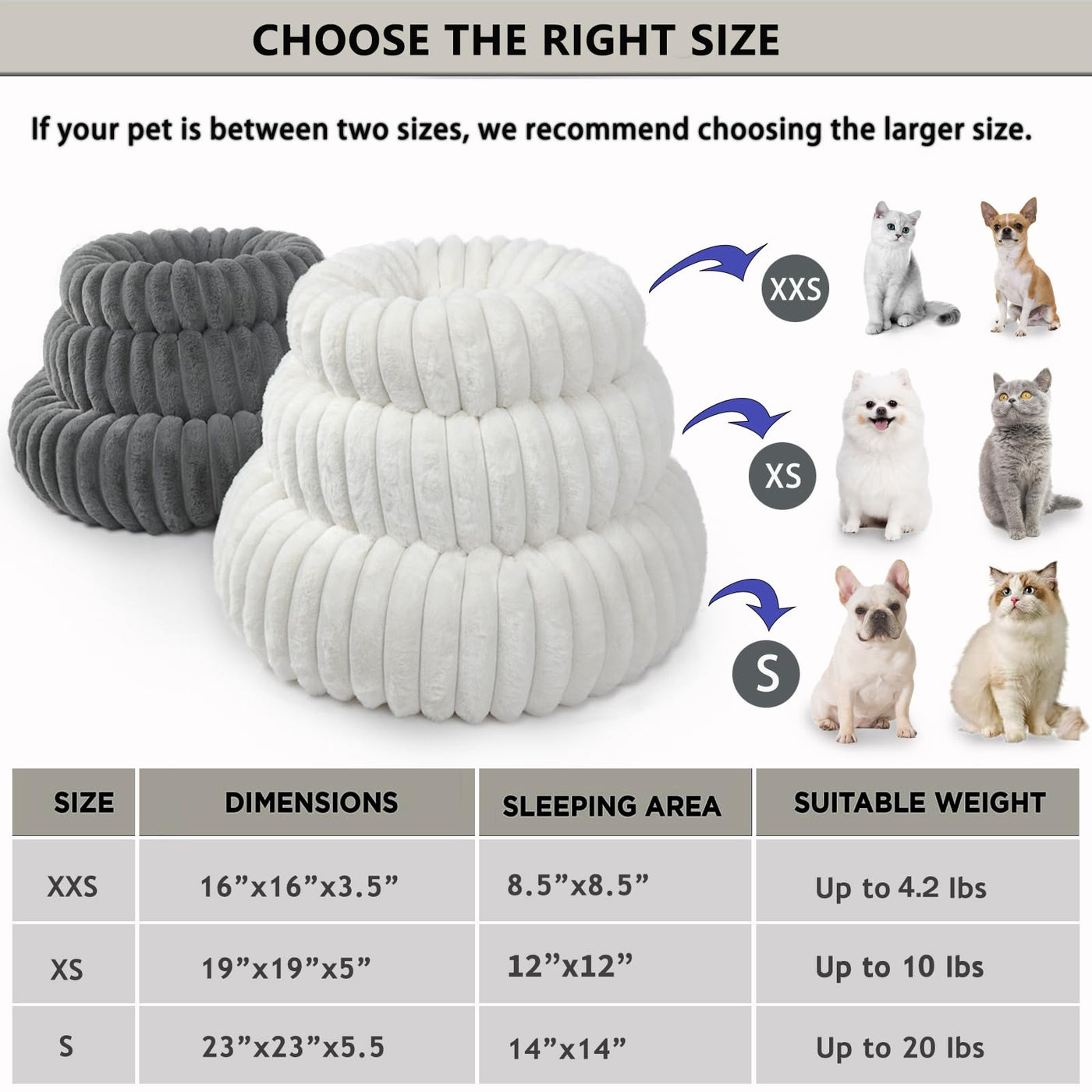 This 23-Inch Donut Pet Bed Is Perfect For Small Dogs And Large Cats Weighing Up To 20 Lbs. Crafted For Comfort, The Cozy, Soft Circular Dog Bed Features A Calming, Anti-Anxiety Design To Help Pets Feel Secure. Its Fully Washable For Easy Care And Includes A Non-Slip Bottom For Added Safety. The Warm Grey Color Adds A Stylish Touch, Making It A Great Addition To Any Home While Providing A Relaxing Space For Your Furry Friends.